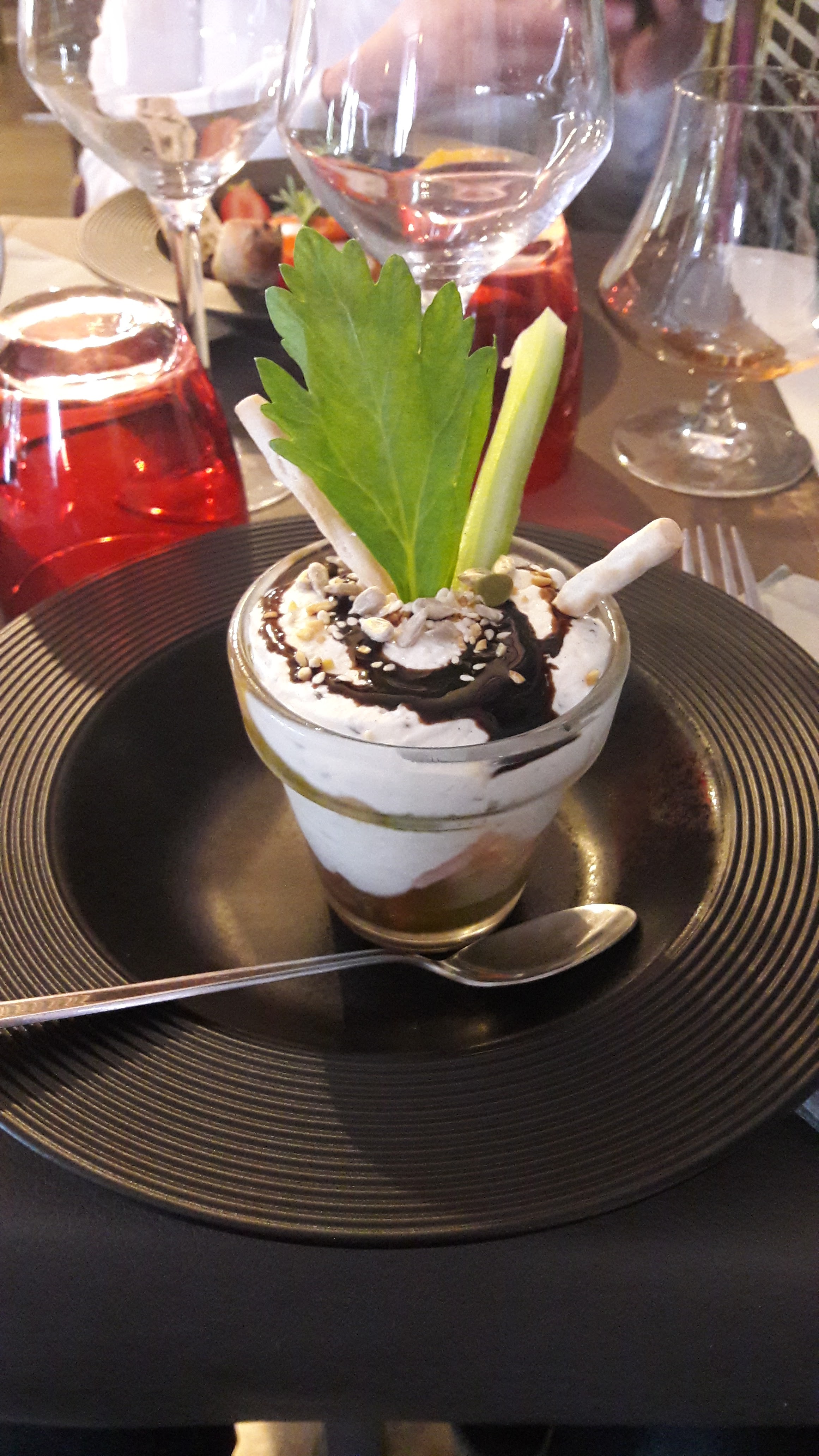 Parfait ! Apéritif maison (vin pétillant avec du cassis), puis entrecôte frites maison (succulentes) puis Tiramisu breton avec Gevrey Chambertin 2016.