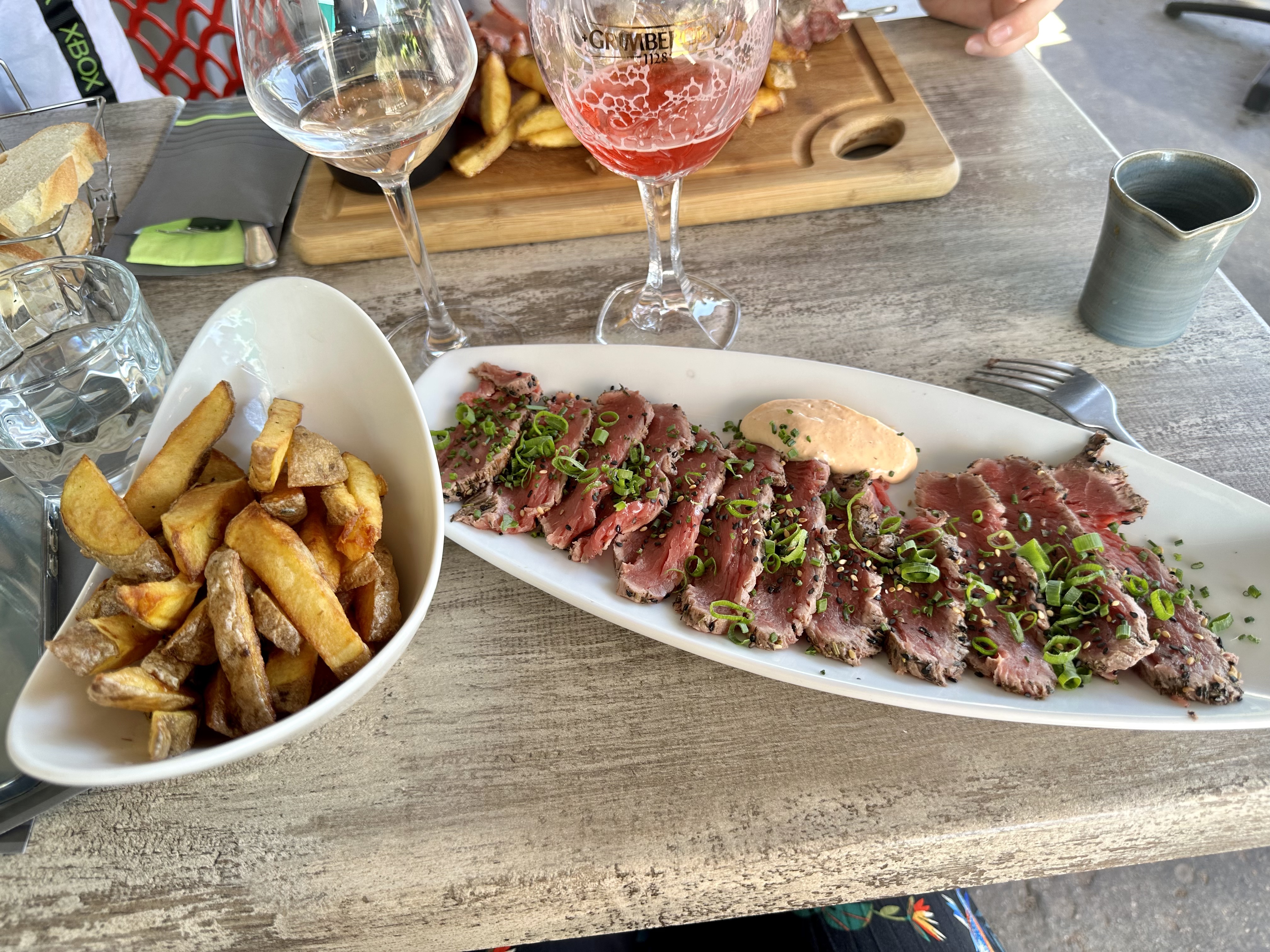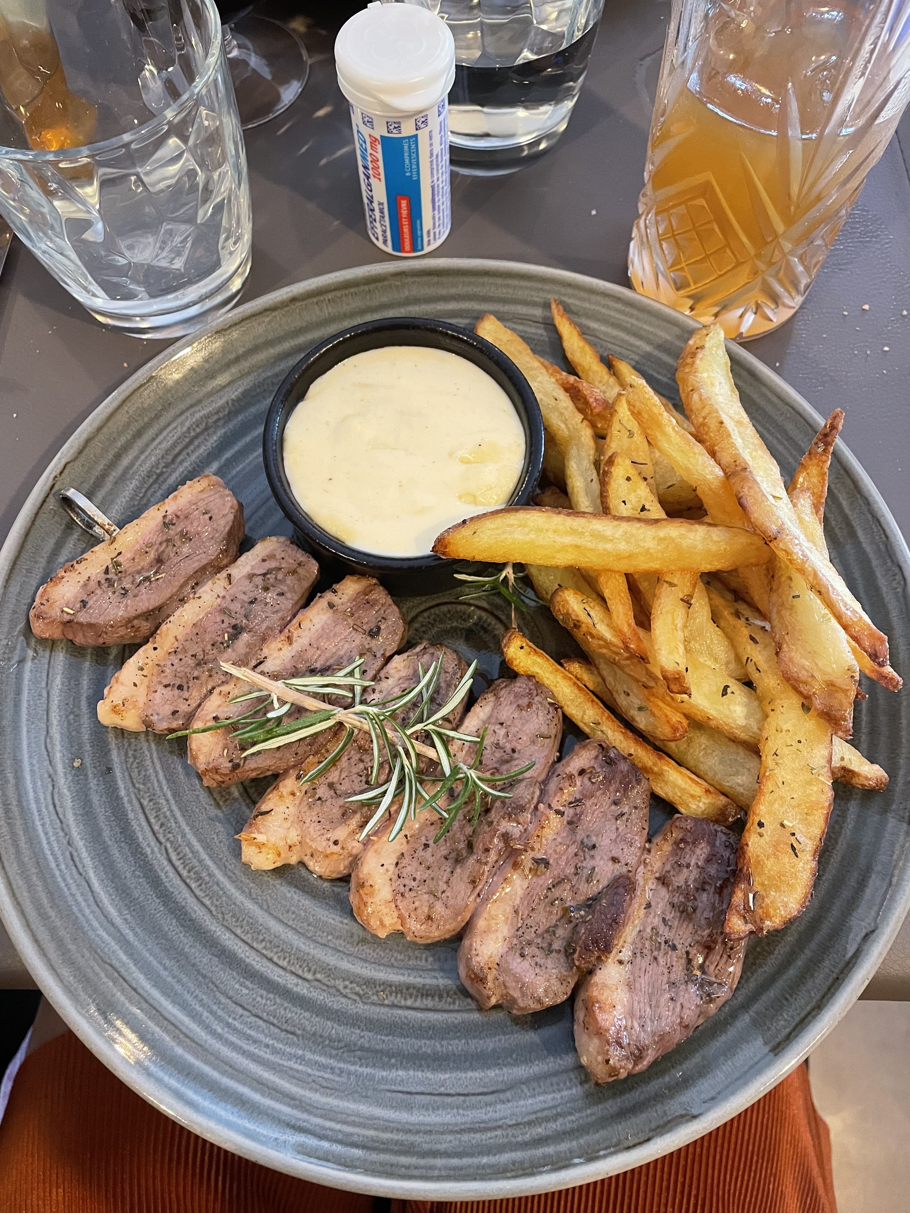 Frites maison et sauce aïoli très bonnes. Steak de thon délicieux mais tout juste chaud à cœur. Île flottante bonne mais sans plus. Certainement meilleure si elle avait été faite 100% maison.