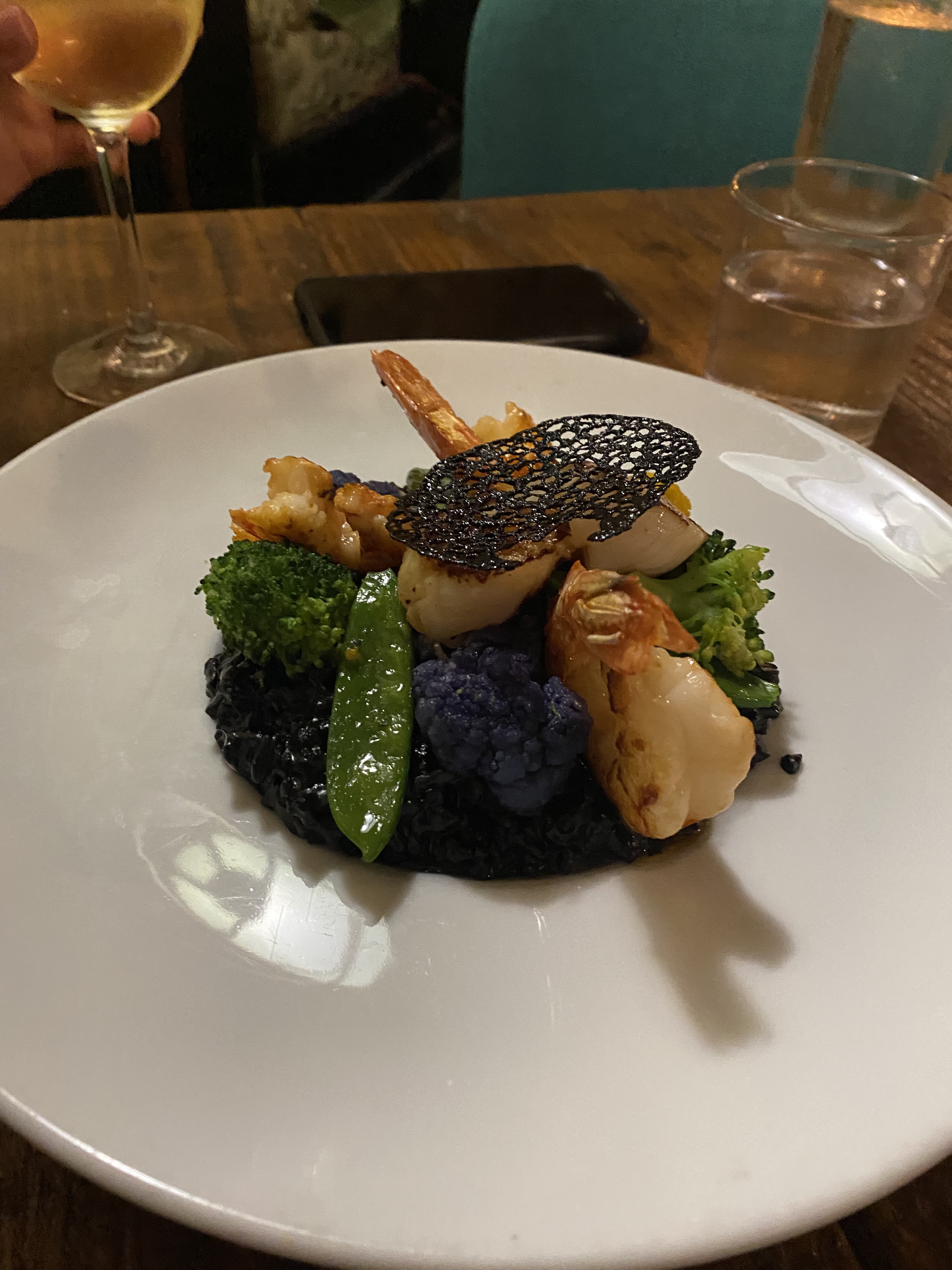 Le cadre est très joli sobre et Calme . la cuisine est faite avec des produits frais . le pavé despadon laqué au miel et le risotto à l'encre de seiche sont exquis et bien présentés.