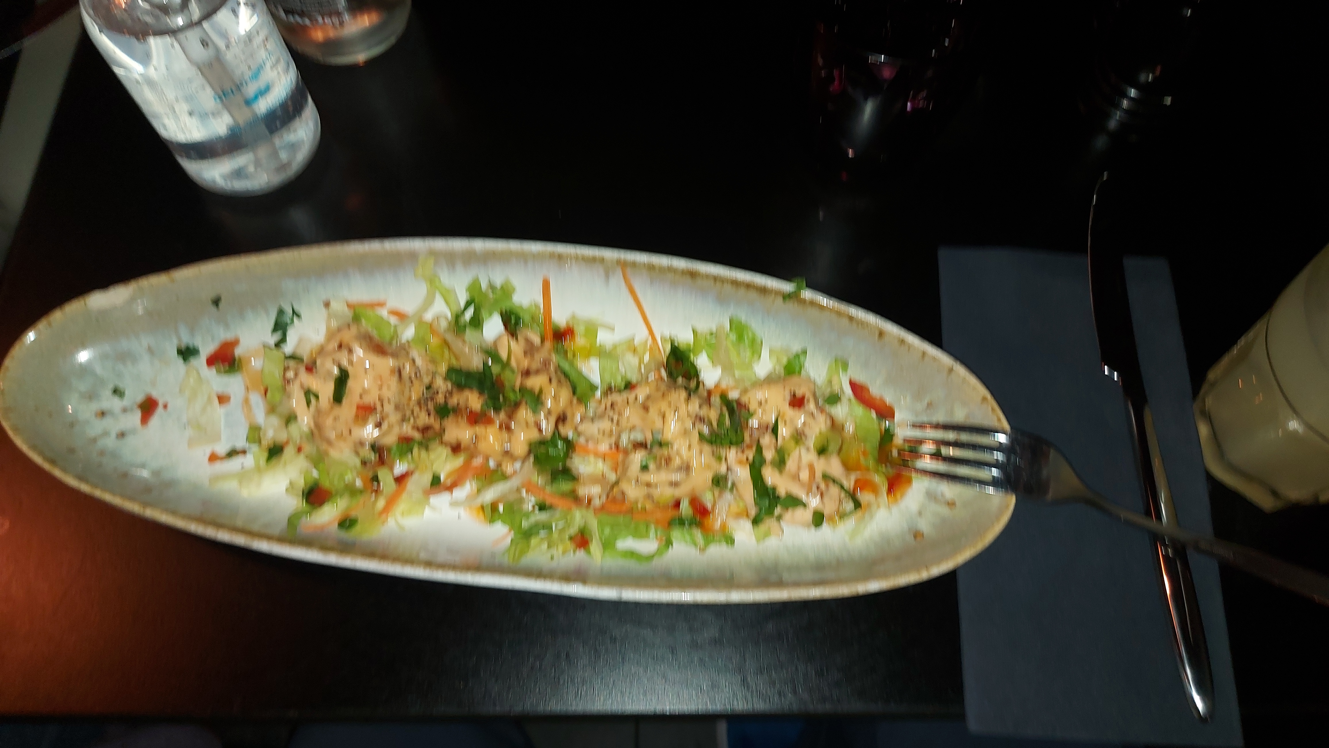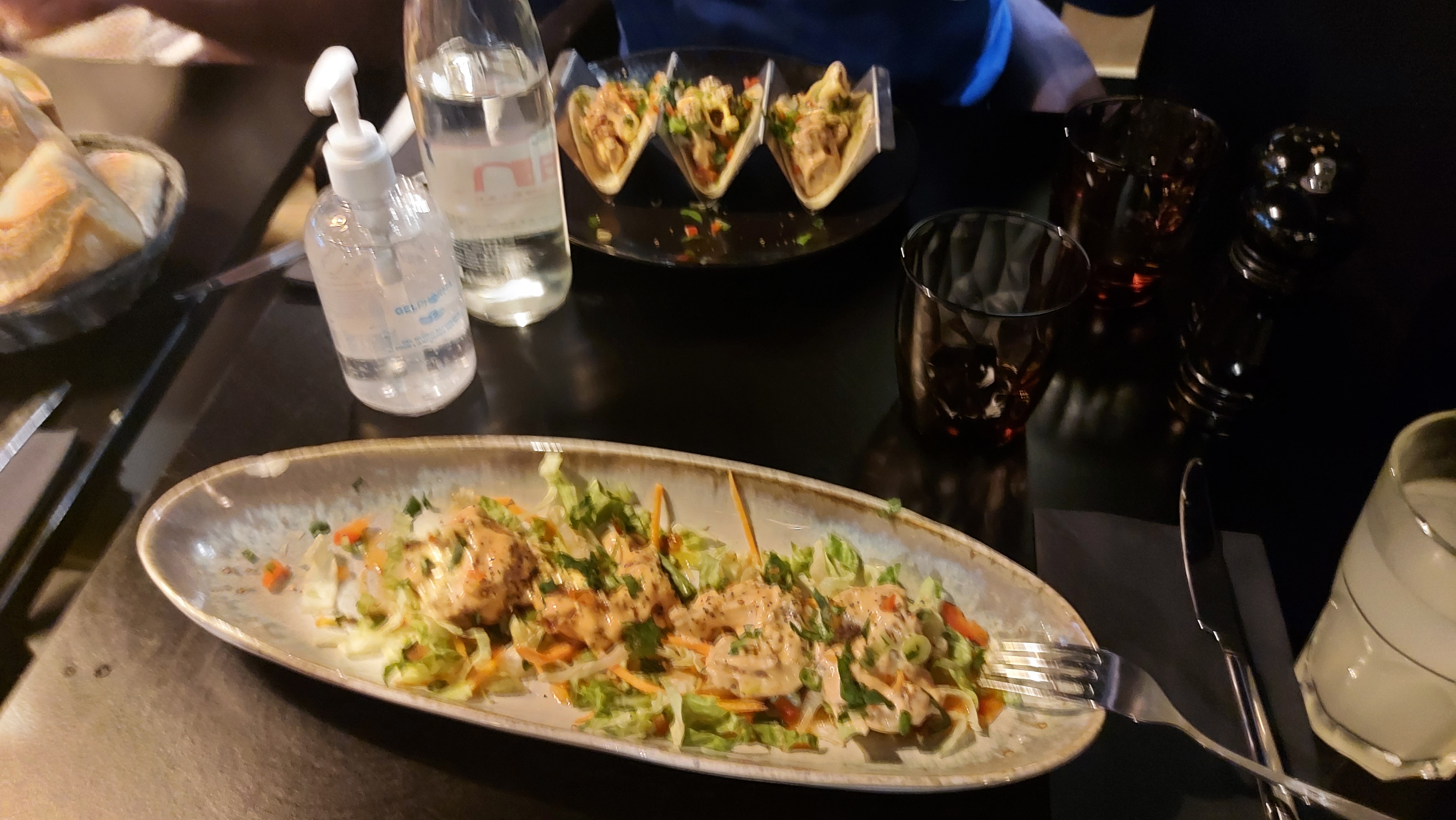 Plats copieux et bons, notamment les entrées qui étaient excellentes (tacos aux crevettes 👌🏻), ainsi que les desserts (tiramisu mangue et cheese cake 👌🏻). Service rapide, assez froid, mais efficace. Gros bémol sur l'ambiance, restaurant très bruyant, difficile de s'entendre au milieu de toutes ces tables. Nous pensions aller dans un restaurant intimiste et chic, ce n'était pas le cas.