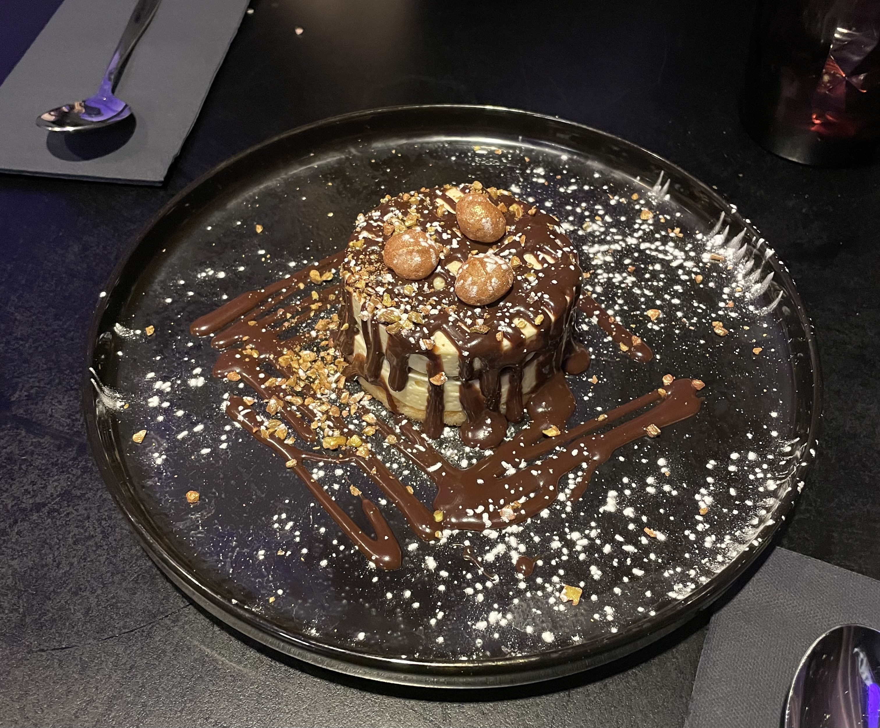 Je pense que c'est la meilleure souris d'agneaux que j'ai mangé jusqu'à présent ! Plats trop délicieux, avec le gratin dauphinois, l'association était parfaite ! J'ai remarqué un point négatif concernant le service, nous étions là à 23h, un peu tard, mais le personnel était vraiment stressé, ils nous ont servi rapidement c'est bien, mais nous avons trouvé qu'ils étaient trop rapides, et je me sentais juste stressé mdr, Je ne pouvais pas prendre de dessert car nous devions passer la commande rapidement ^^