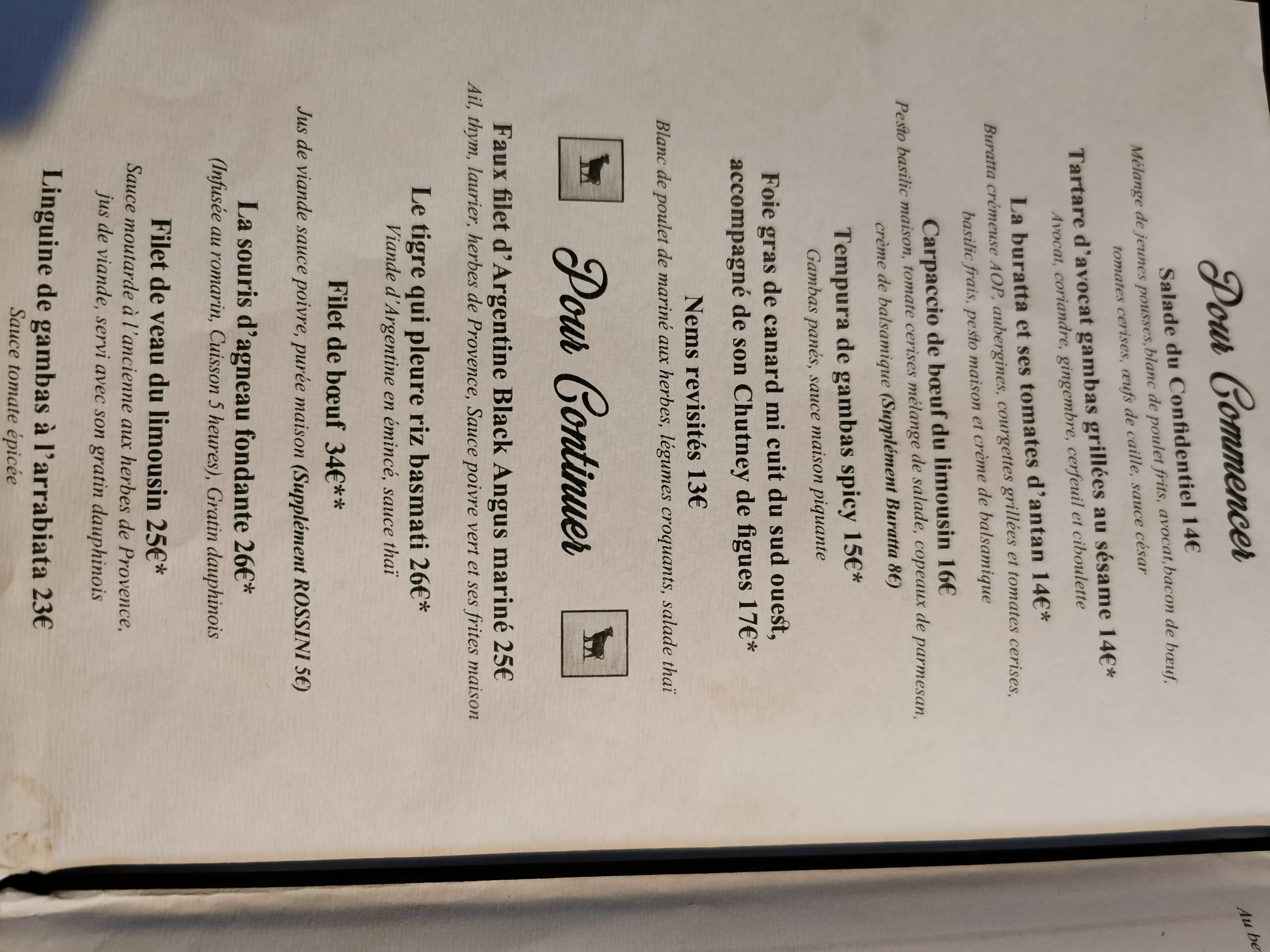 Très beau mais un peu cher pour ce que c’est. Entrées : très bonne burrata et bon foie gras également, le service est rapide et chaleureux Plats : pas mal, la viande de l’entre-côte était un peu trop grasse. Pas très fan du poulet. Mais la présentation des plats était sympas. Le service était également rapide ce qui est agréable. Point négatif : très gros point négatif même, les moucherons au dessus de nous à voler au dessus de nos plats et sur les murs. Pas très glamour ni classe. Déception sur ce point qui était vraiment très gênant