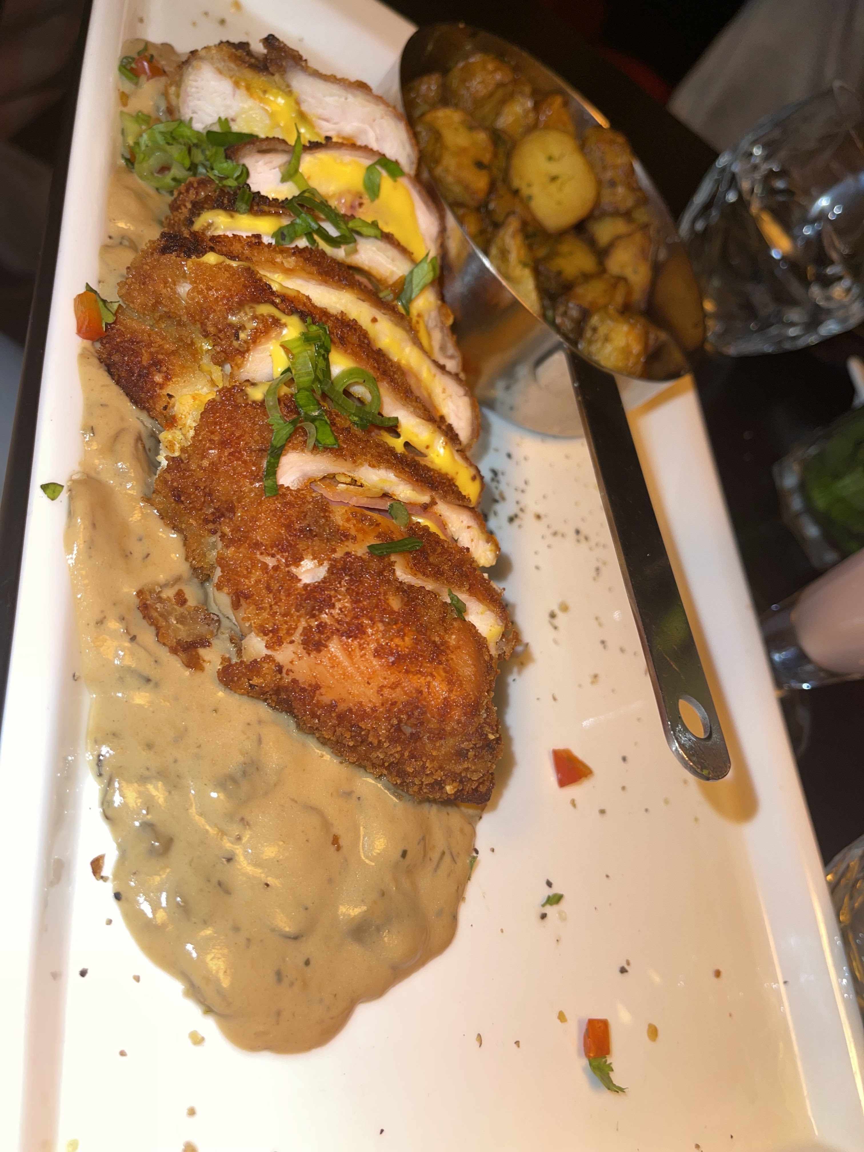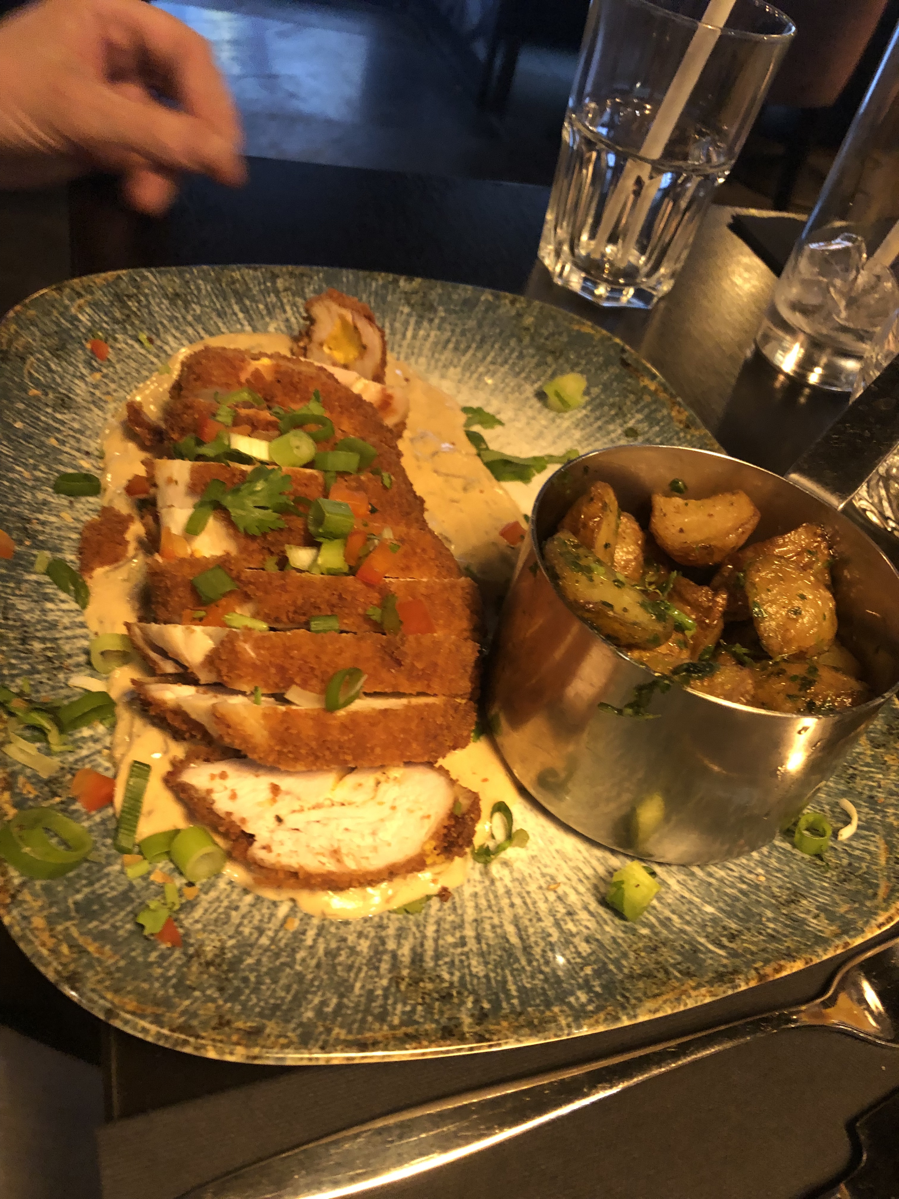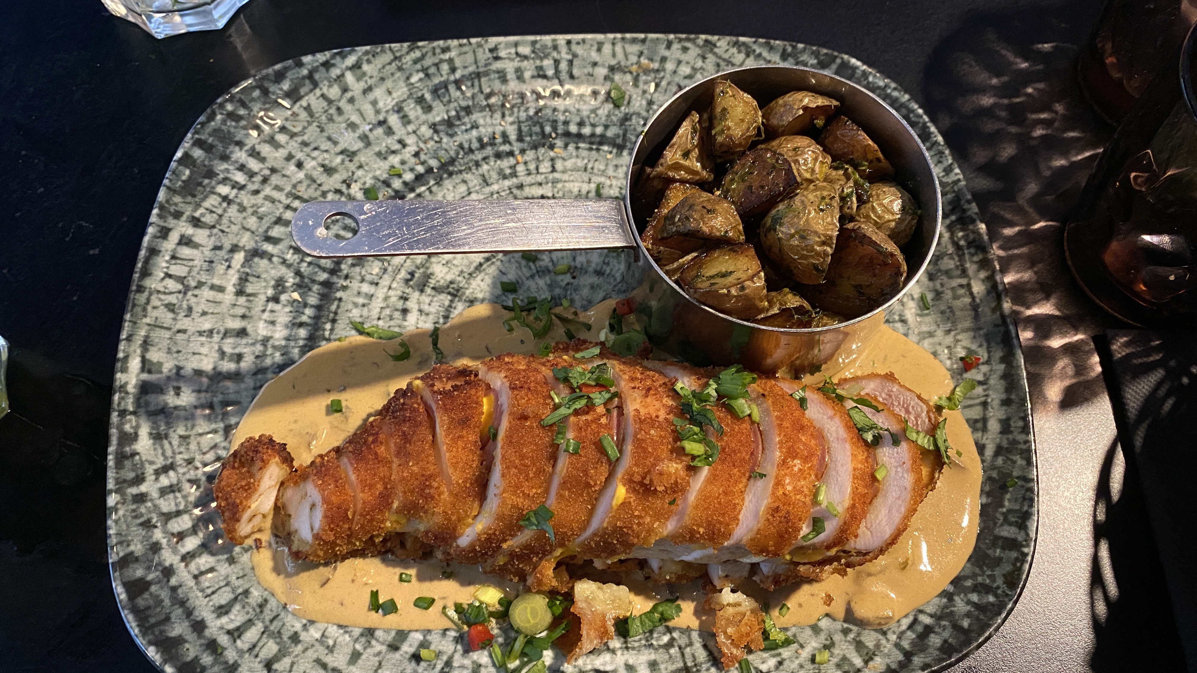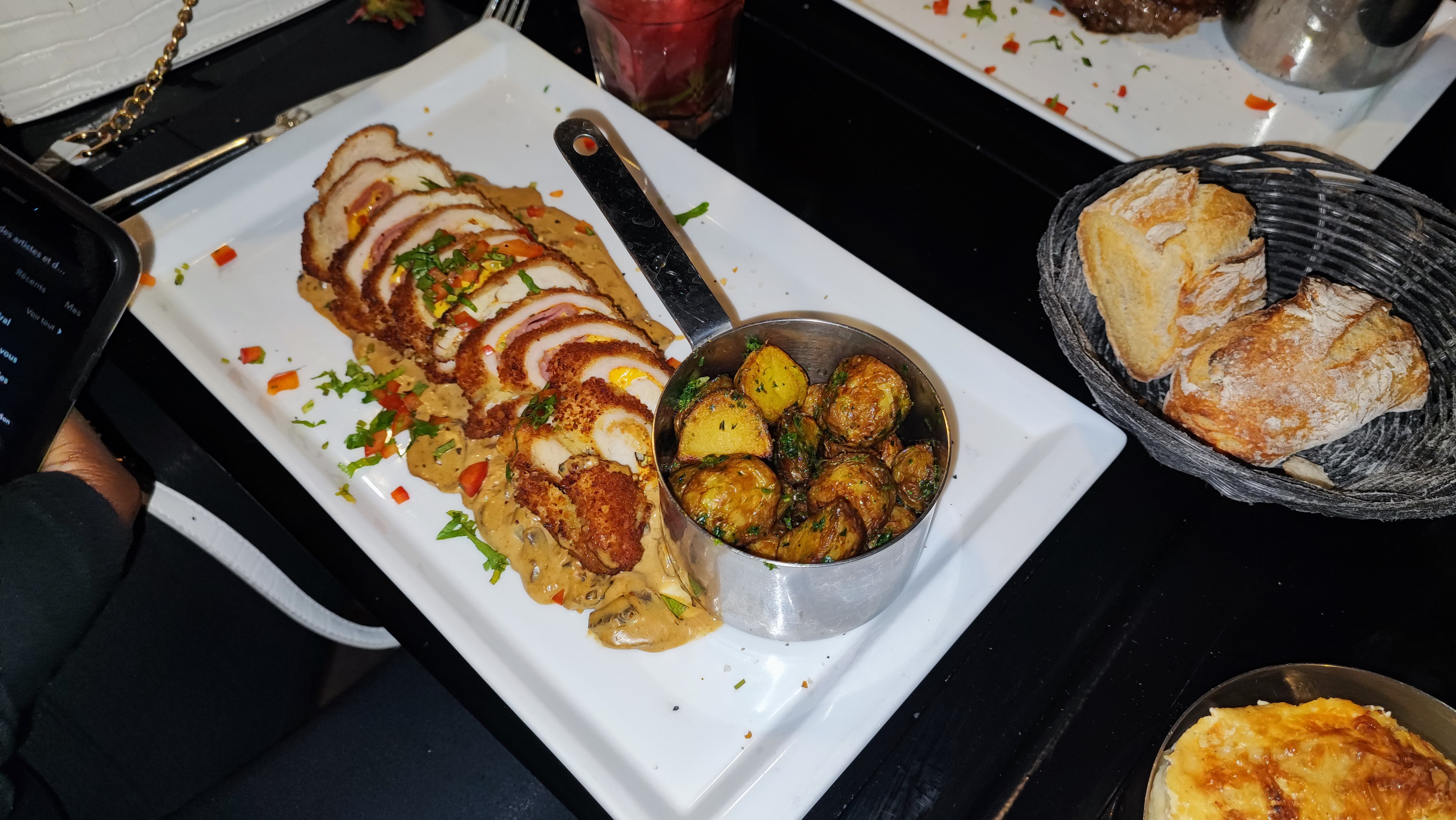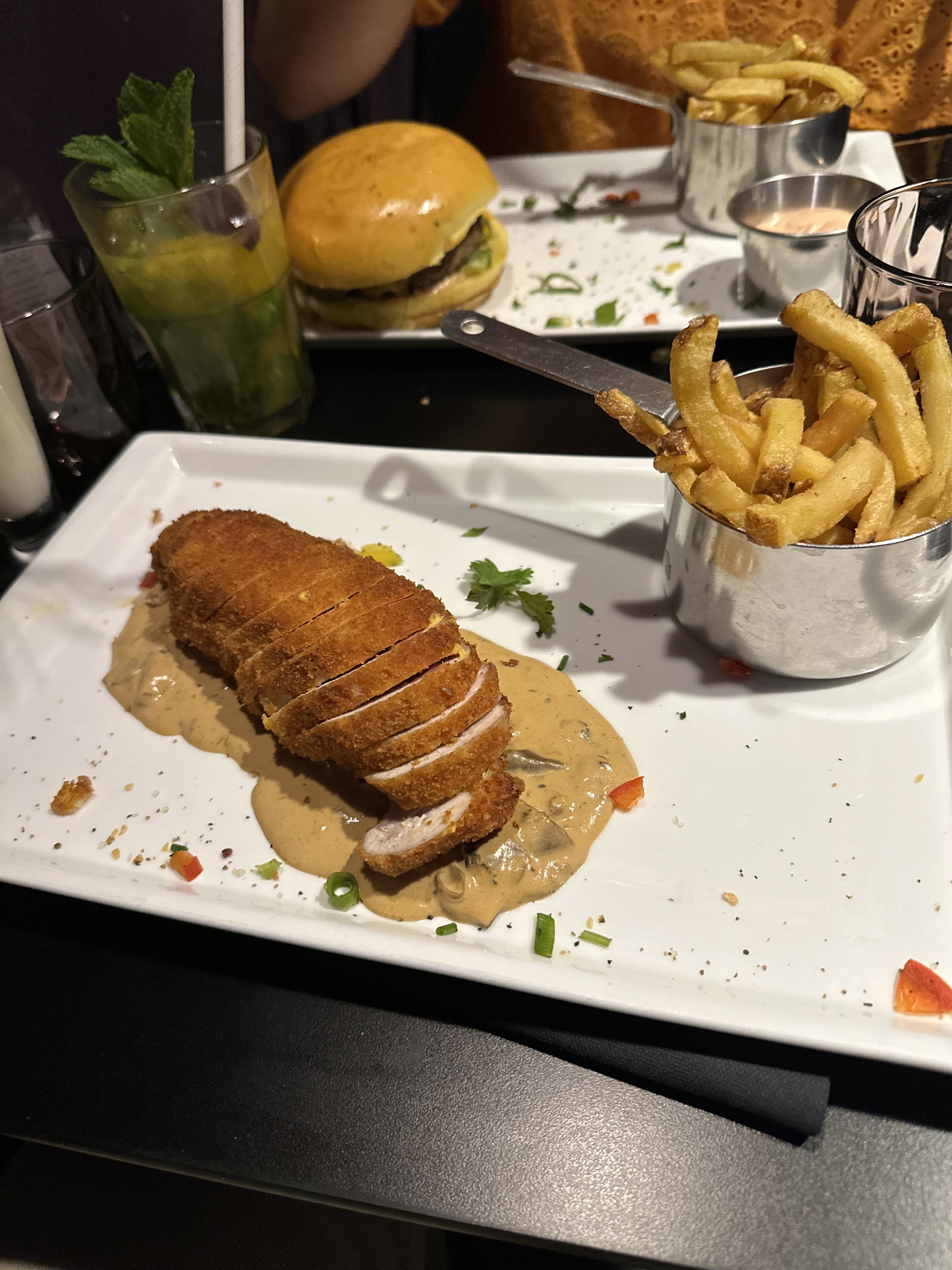 L'ambiance du resto est très sympa, les cocktails très bons mais le plat principal m'a vraiment conquise je suis venu exprès pour le tester au vu des photo et j'ai pas été déçue c'est super savoureux que ca soit le poulet, la sauce ou les pommes de terre c'était incroyable je recommande👍🏼