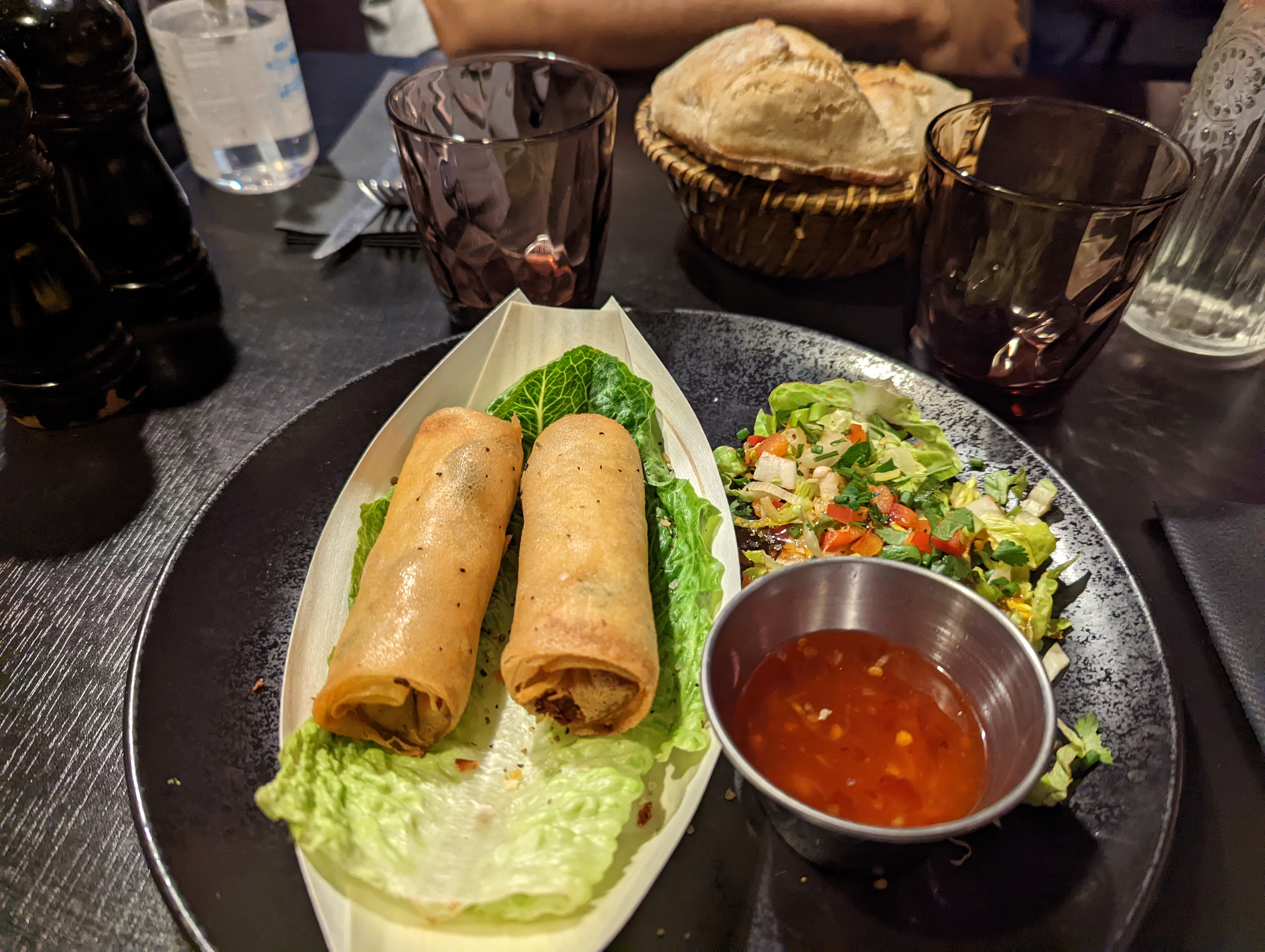 Entrée trop copieuses. Les 2 boureks au poulet étaient très bons mais énormes. Du coup j’ai eu du mal à manger mon plat alors que la viande était très tendre et la sauce goûteuse. Pas de place pour le dessert. Serveuses très souriantes.