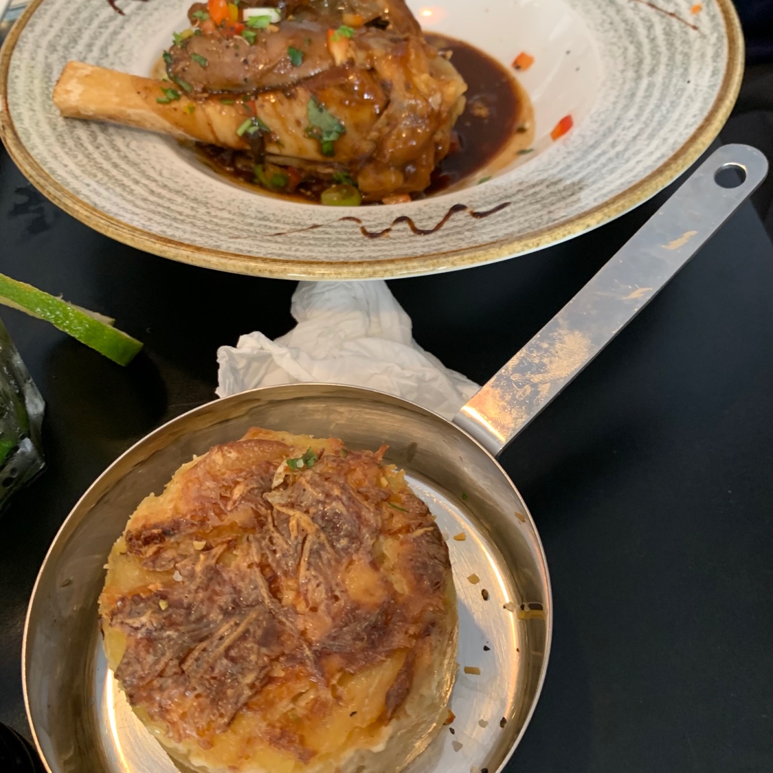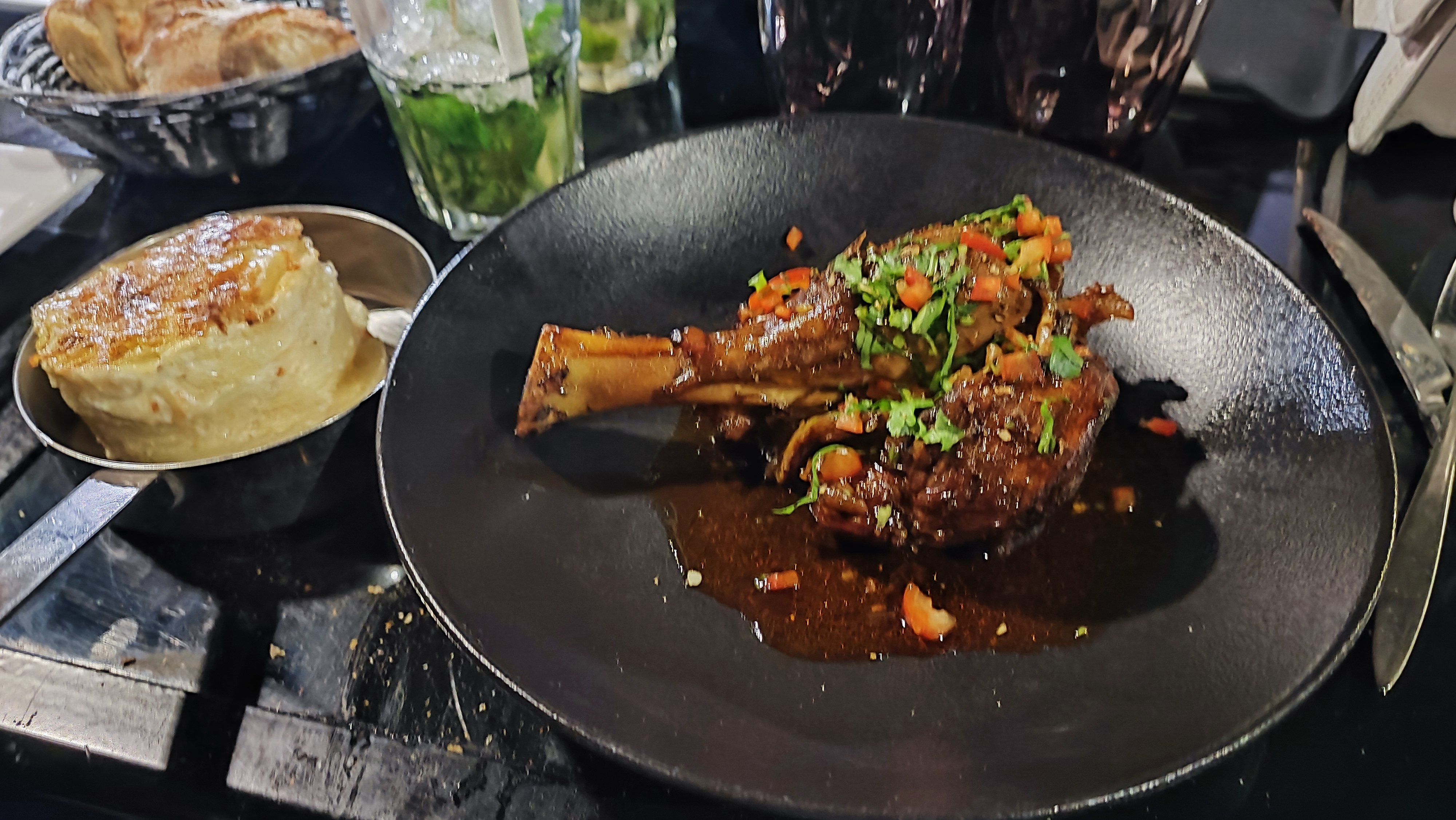 Ma 2ème visite de retour… Foie Gras et Jarret d'Agneau Halal. Au prochain voyage j'essaierai le steak… le virgin mojito était rafraîchissant !