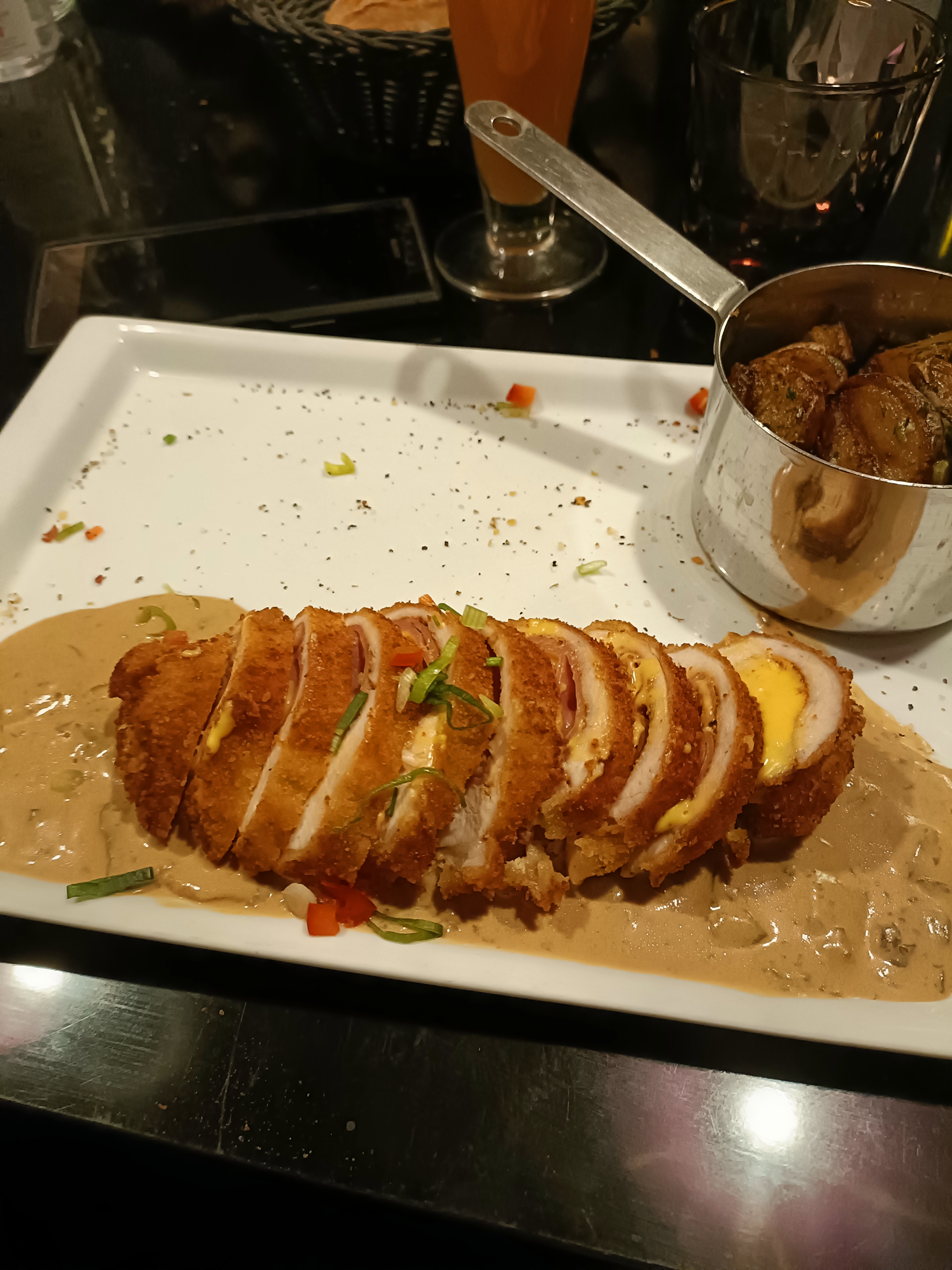 Rapport qualité/prix raisonnable, le prix semble un peu élevé mais les portions sont assez grandes également. Nous avons eu le faux-filet Black Angus et le poulet italien croustillant classique, tous deux étaient délicieux. L’hygiène aurait pu être un peu meilleure en général, mais cela ne change rien au fait qu’ils mangent bien.