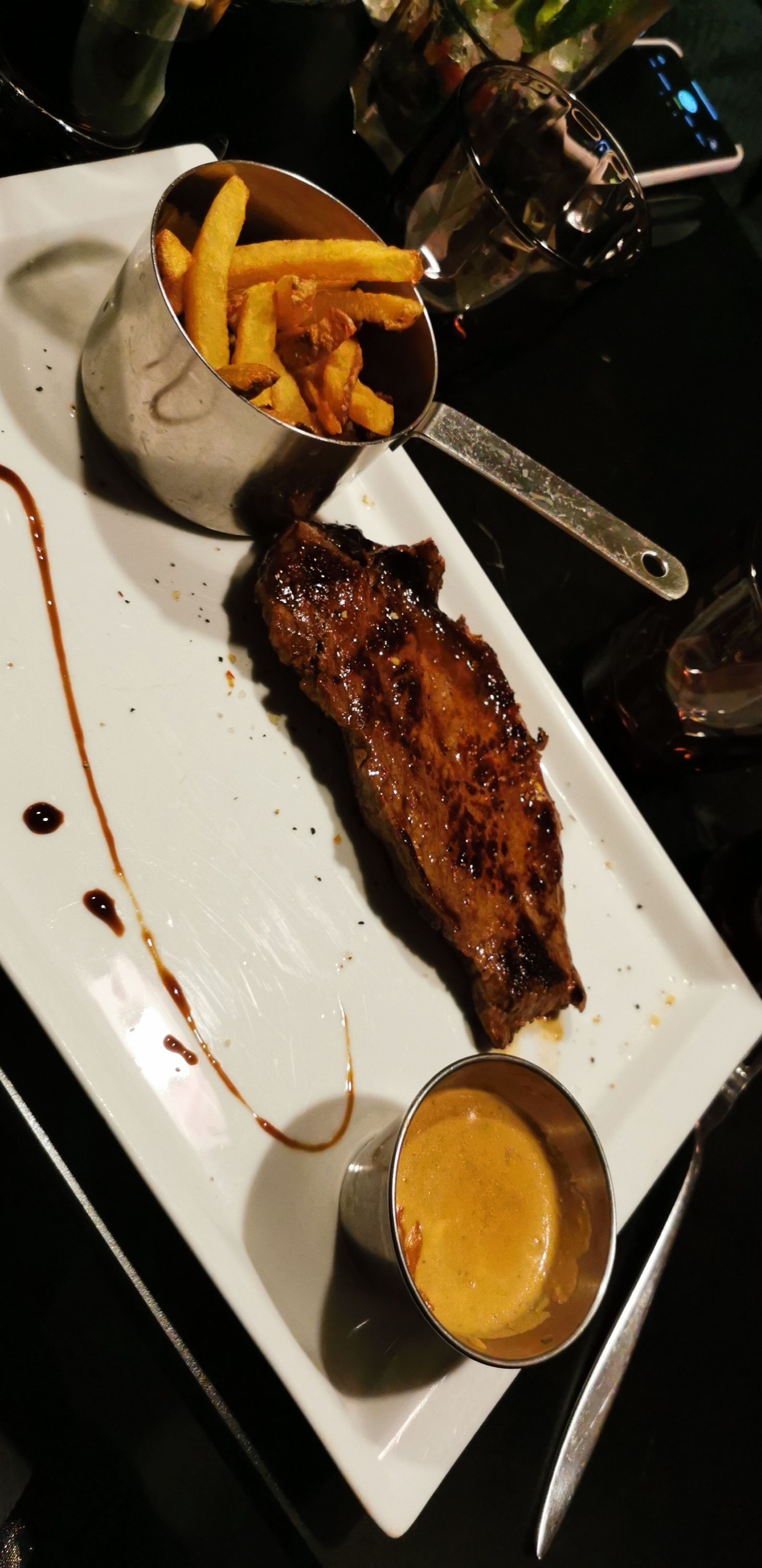 J'ai enfin pu essayer la cuisine française car ce restaurant est halal et c'était incroyable ! Le meilleur steak que j'ai jamais mangé, la sauce aux champignons et la purée étaient si savoureuses. Mon mari a dit qu'il ne m'avait jamais vu manger aussi vite ! Nous avons également eu les tacos aux crevettes qui étaient super savoureux (juste une petite portion), des mojitos vierges et il a eu le jarret d'agneau qui était vraiment sympa aussi. J'ai aussi adoré le choix musical ! Musique que j'ai dans ma playlist personnelle. C'est cher mais ça vaut le coup d'essayer au moins une fois pour goûter à la cuisine française :)