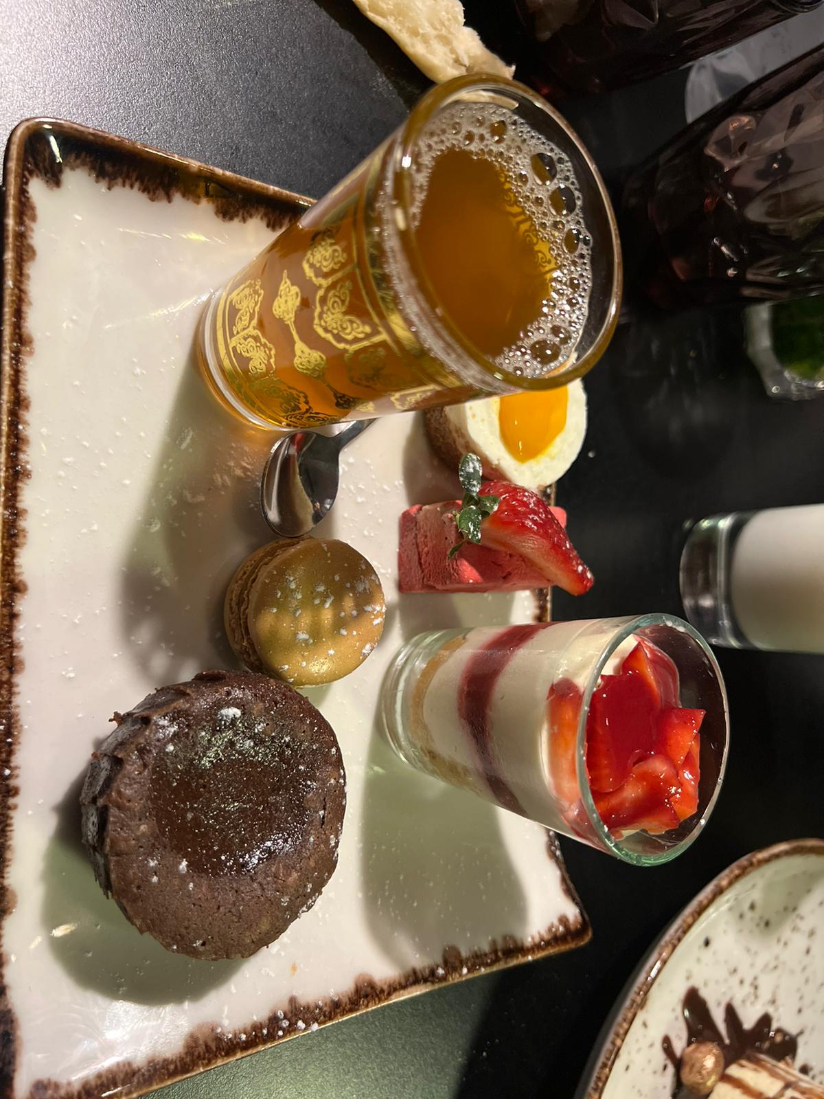 Bon accueil le personnel est aimable et professionnel. Le choix y est diversifié, plusieurs sortes de viandes poissons ou accompagnements. Les desserts aussi. C'était très bon et très bien présenté (oups oublié de prendre en photo l'entrée et plat), les desserts olalala magnifiquement délicieux ! Le seul point à améliorer et malheureusement des plus important je pense, l'emplacement des tables du moins pour les couples : j'y suis allée avec mon mari et nous étions dans la seconde salle, pas loin d'une table (extrêmement) bruyante de 5 personnes. D'autres couples ou groupes étaient arrivées par la suite et les pauvres au vue des regards désespérés ils semblaient tout autant génés du bruit tant on les entendait... Ce qui serait super c'est d'avoir une partie plus calme pour les couples afin de créer une ambiance chaleureuse... Nous avions un couple et un groupe d'amis plus proche de notre table et ils parlaient sans faire trop de bruit alors que les autres étaient plus loin et on les entendait dans toute la salle peu importe la place. Honnêtement nous avons finis par prendre à emporter le reste des plats et mangé les desserts assez rapidement tellement le bruit devenait lourd à en avoir mal à la tête...