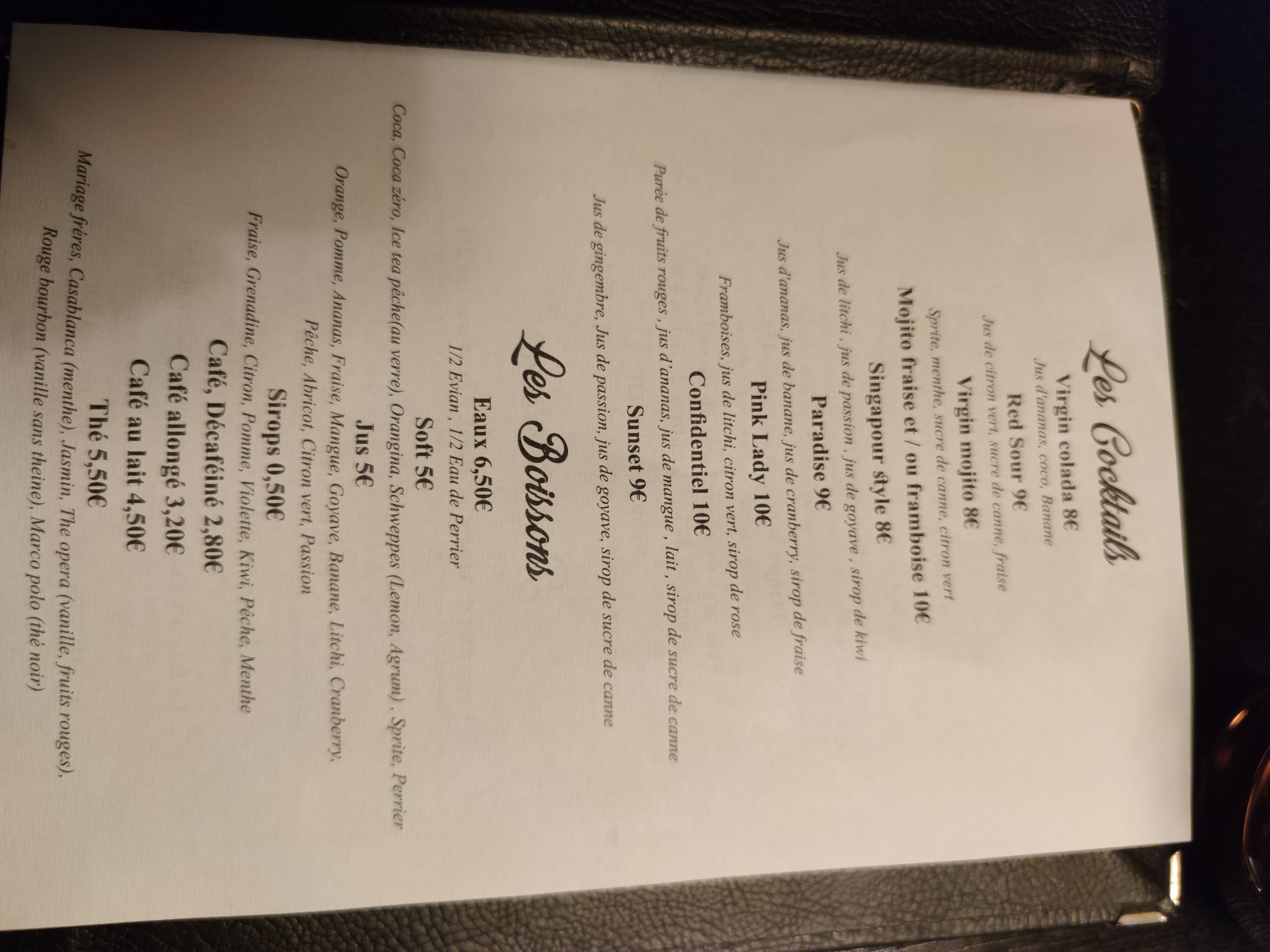 Les plats sont bons et les cocktails bien présentés. Personnel accueillant et disponible. Dommage que les prix des menus n'étaient pas indiqués et proposés les jours fériés car nous n'avons pas pu découvrir plus de spécialités et les tarifs à la carte sont un peu excessif.