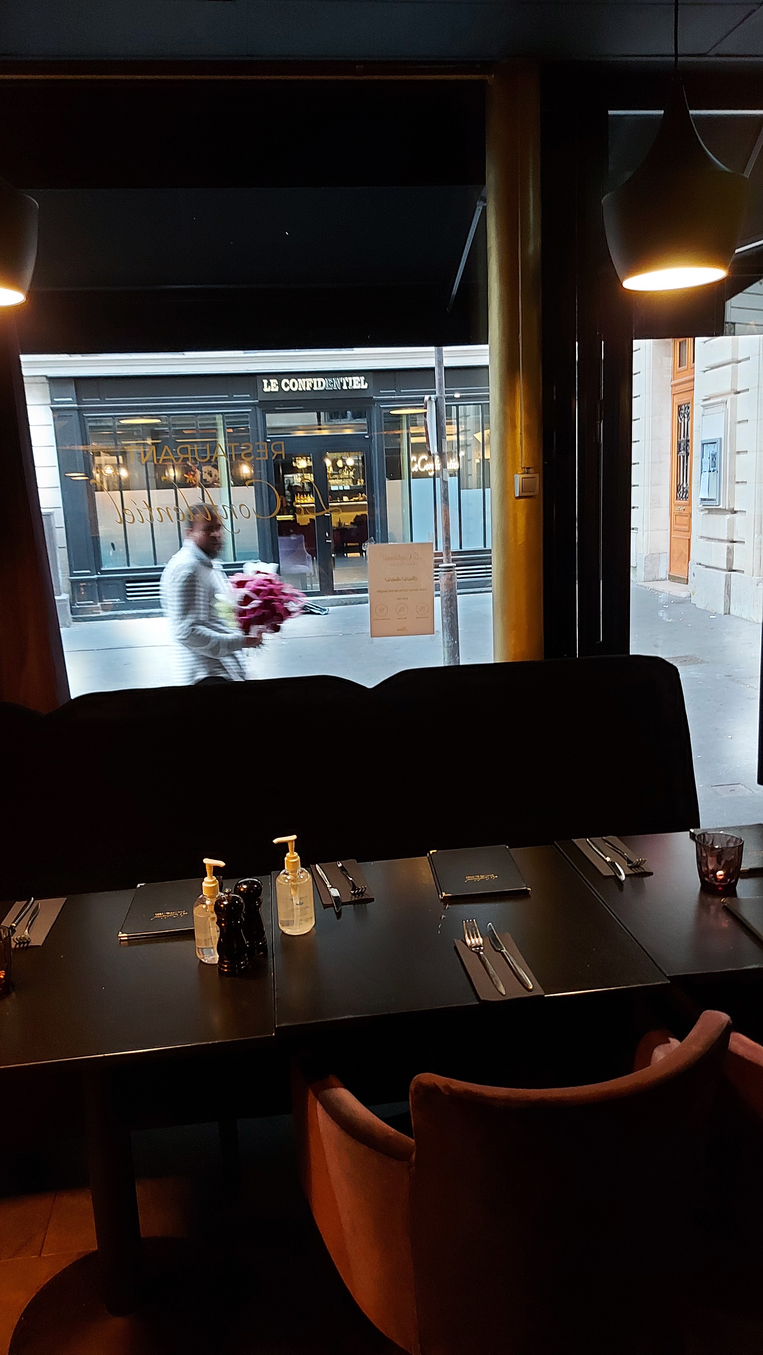 Hello, Nous avons eu le plaisir de passer une soirée dînatoire agréable. « Le Confidentiel » est un petit restaurant intime et discret près des Champs-Élysées, idéal pour ceux qui aiment apprécier le calme et la discrétion dans une ville en perpétuelle effervescence comme Paris. Le personnel a été agréable et attentif, rendant l'expérience d'autant plus mémorable. Le repas a été servi avec une attention particulière à nos demandes, et la qualité des plats était remarquable. Nous tenons à vous exprimer toute notre gratitude pour cette soirée sympathique. Nous recommanderons volontiers votre adresse à nos amis de passage à Paris, avec grand plaisir ! Merci pour votre hospitalité !
