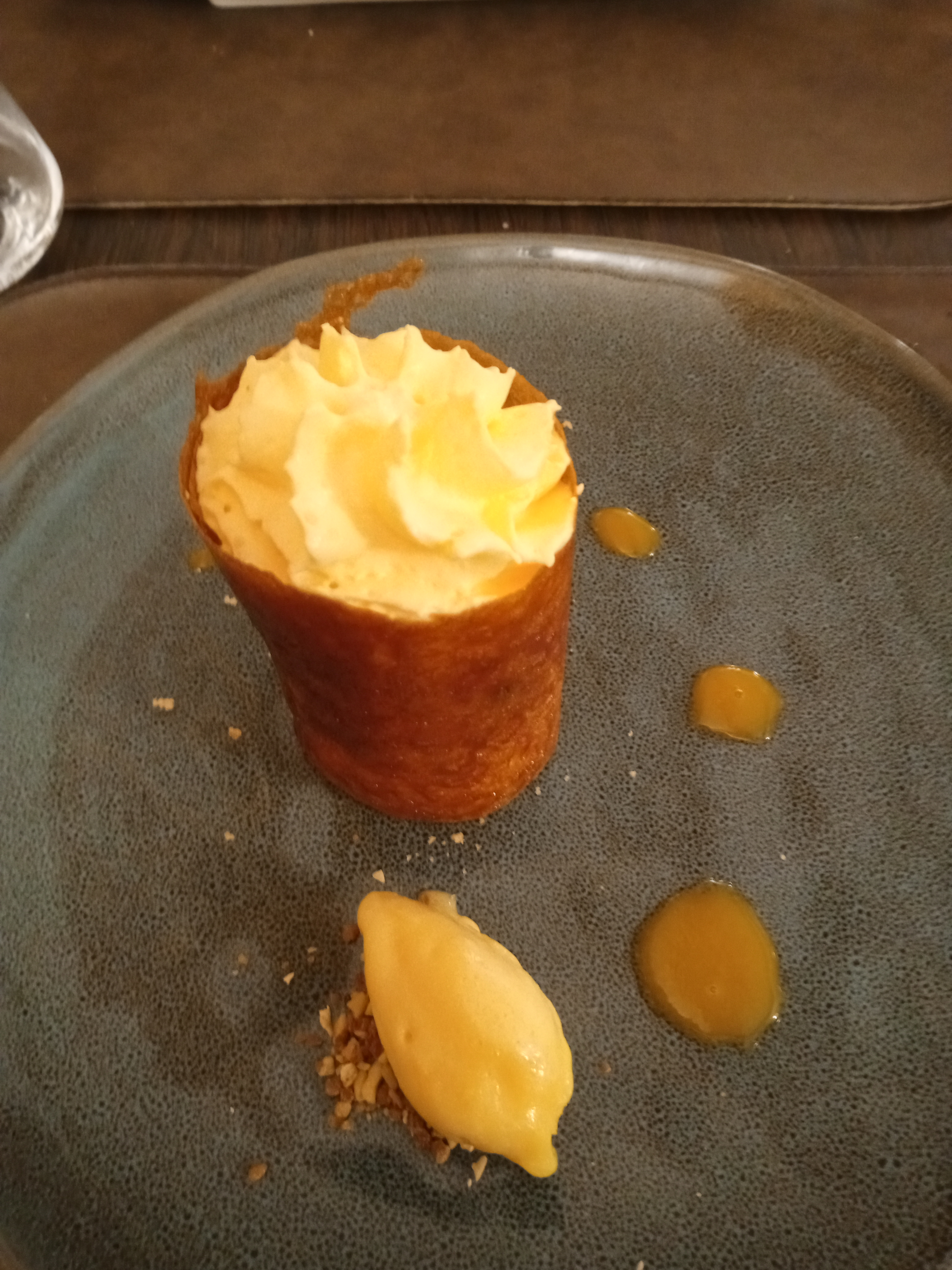 Il pleuvait, on a décidé de se faire un resto plaisir. Un sans faute du début à la fin, produits frais cuisinés avec passion. Une explosion de saveurs. Bref on s'est régalé une mention particulière à la pêche façon melba , une saveur d'enfance que je n'avais jamais retrouvé au restaurant. Merci pour ce délicieux moment