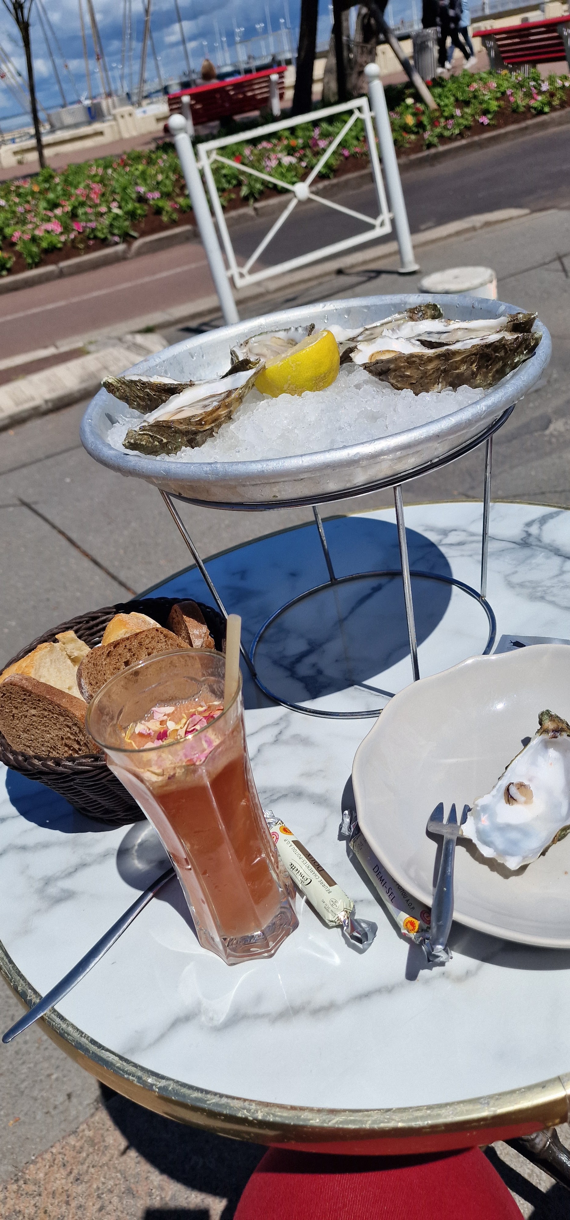 Petit arrêt avec un thé glacé fait avec soin et 6 huîtres. Personnels sympa.