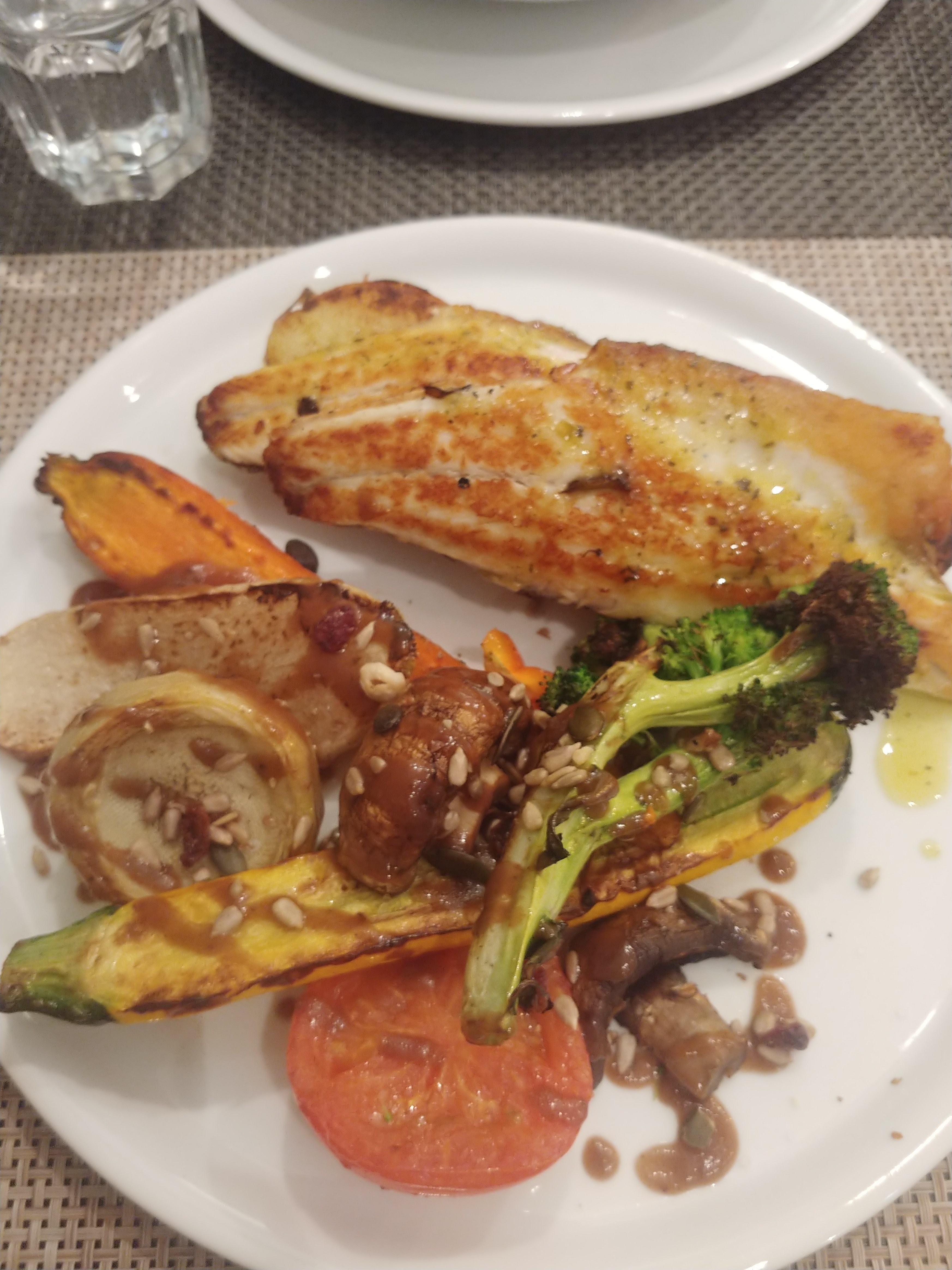 tout m'a plu. La cuisson des différences il y avait un mélange de légumes confits grilles croquants qualité. le saumon était parfaitement cuit . La portion était très copieuse. Restaurant se trouve dans une rue large tranquille et aérée . Les tables sont espacées. Le patron est très accueillant