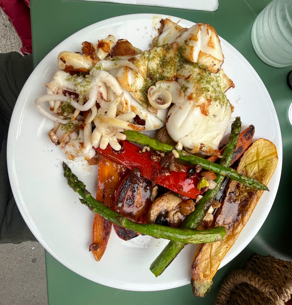 Bon déjeuner: carte réduite et donc signe de qualité. La seiche était très bonne et copieuse avec ses légumes grillés. Tapenade offerte avec les boissons.