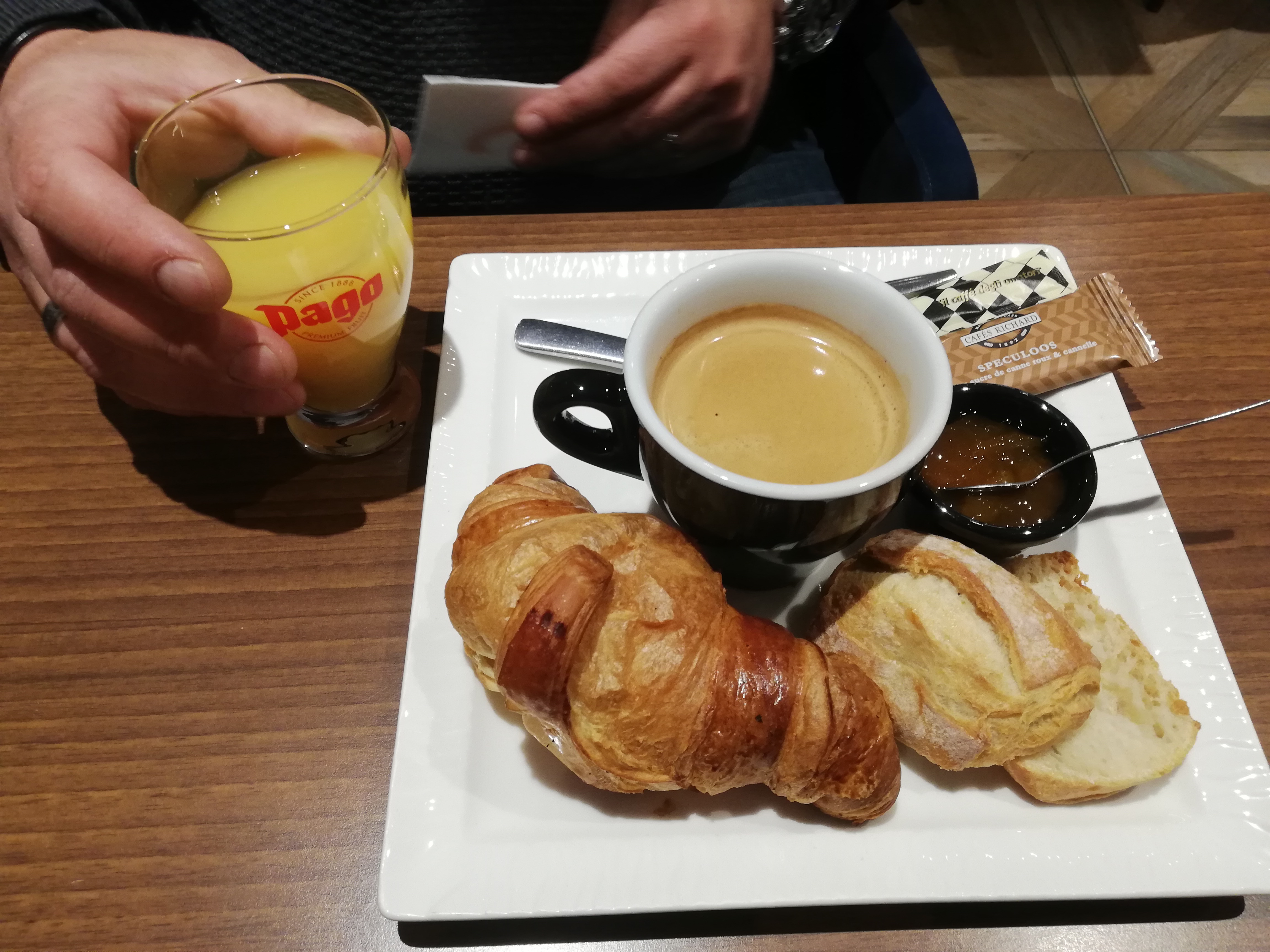 Lieu chaleureux et agréable. Petit déjeuner pour 7,20 super bon n, produit frais jus pressé sur place croissant et pain chaud