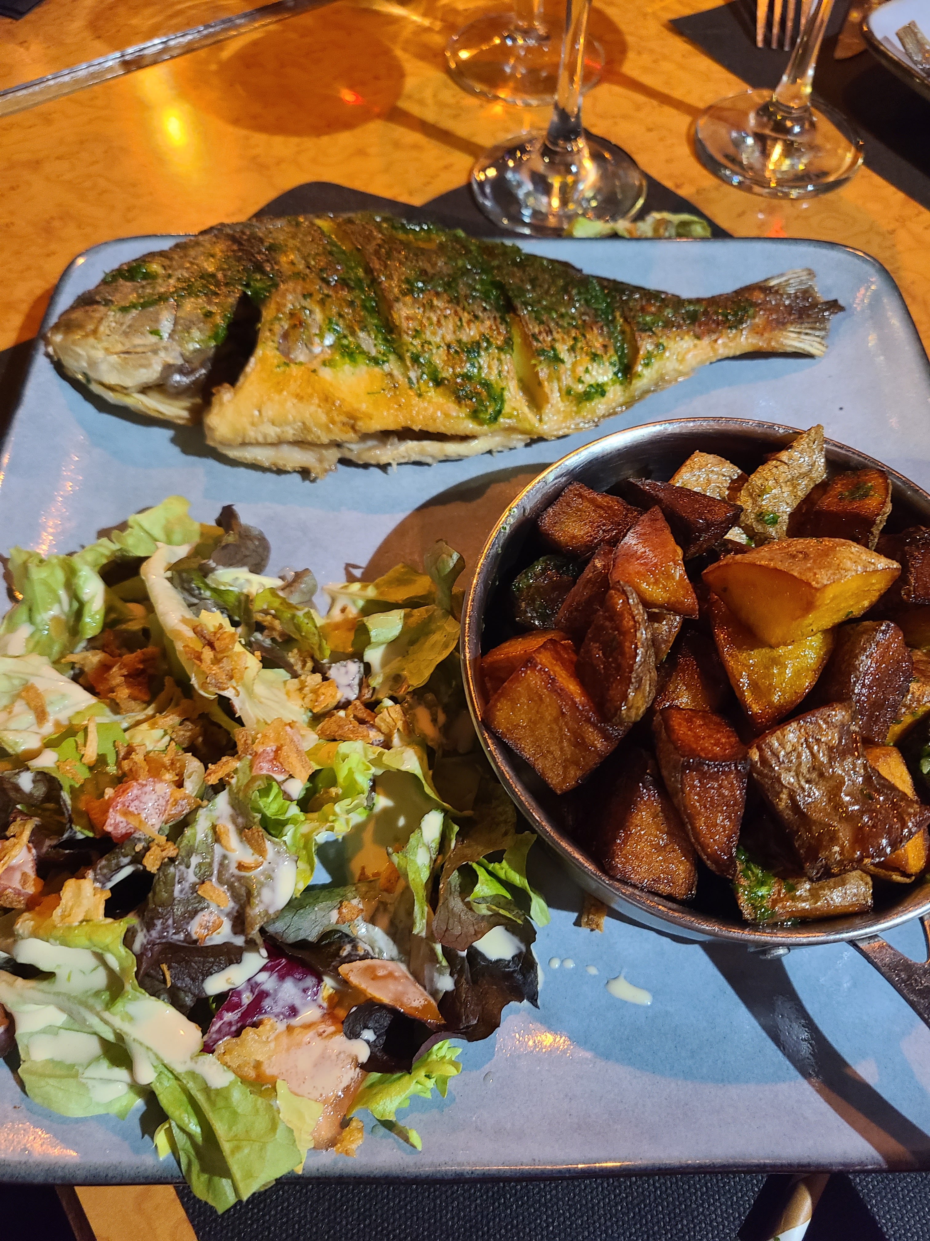 Une de mes adresses préférées pour déjeuner ou dîner Carte variée produits frais On s’en le fait maison à des prix abordables. Mention spéciale pour la DORADE ( assiette Océane)
