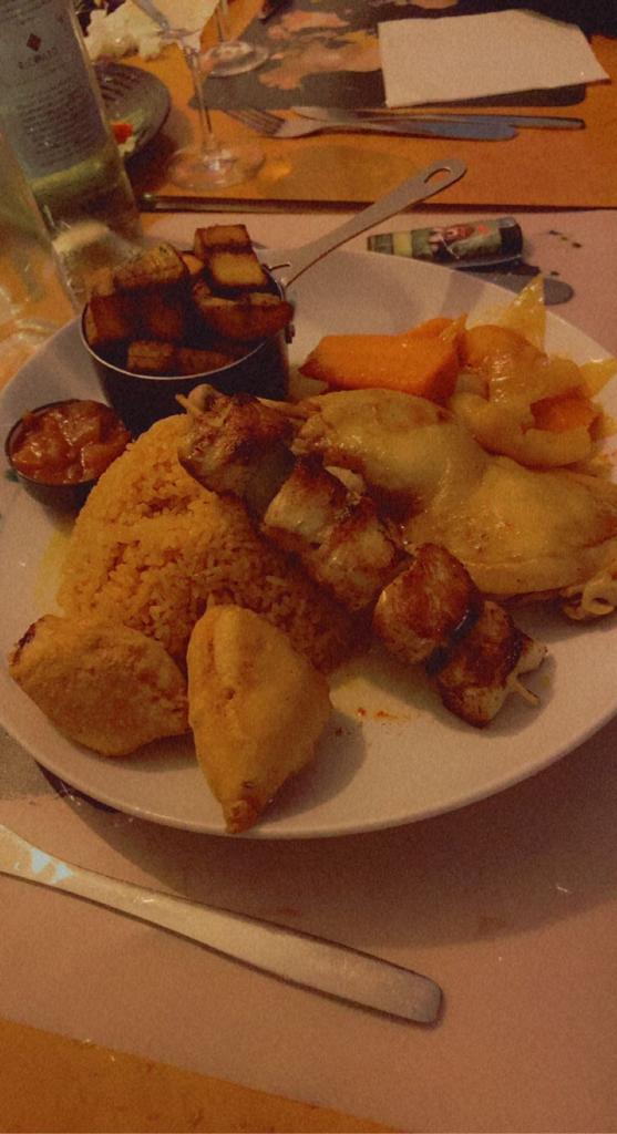 Thieb et Mafé poulet bien cuisiné, poulet tendre, portion copieuse là dessus rien à redire, par contre la portion d’aloko à 6,50€, je trouve ça vraiment exagéré, que ce soit par le prix et la taille de la portion (pas assez grosse et qui plus est n’était pas très mûrs). Nous avons malgré tout bien mangé.