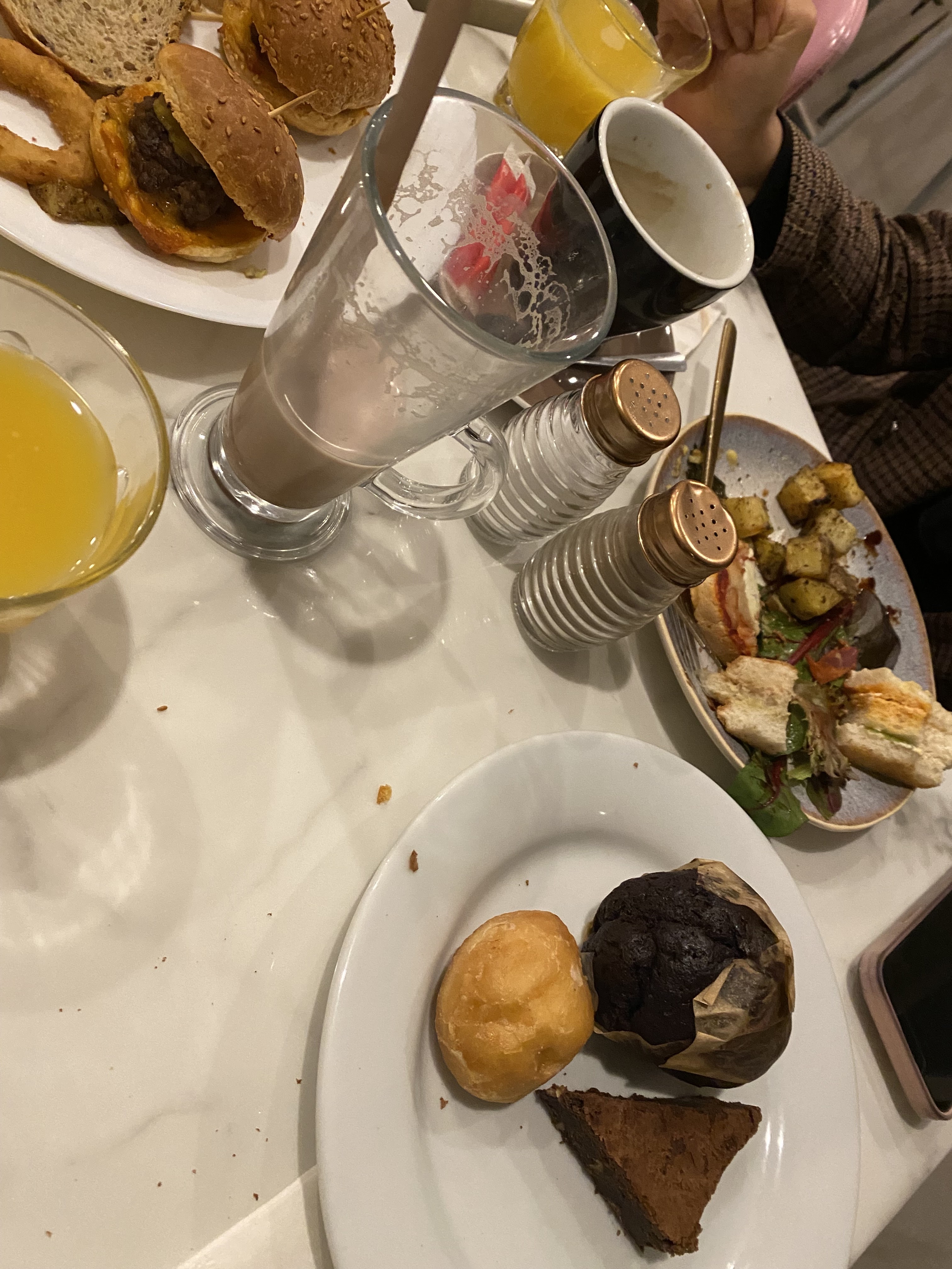 Le concept est sympa les plats très bon. Dommage que la formule n'est pas respecté, il est stipulé partout que les viennoiseries les fruits, les jus et les boissons chaudes sont à volonté pour la formule brunch, malheureusement à la facturation on nous facture les cafés et les thé pris en plus de la première boisson chaudes. Nous étions de tout de même 11 personnes. Nous avions été également très embarrassé et choqué du service agressif d'un des serveurs, nous n'avons pas osé le solliciter vu la manière dont il répondait.
