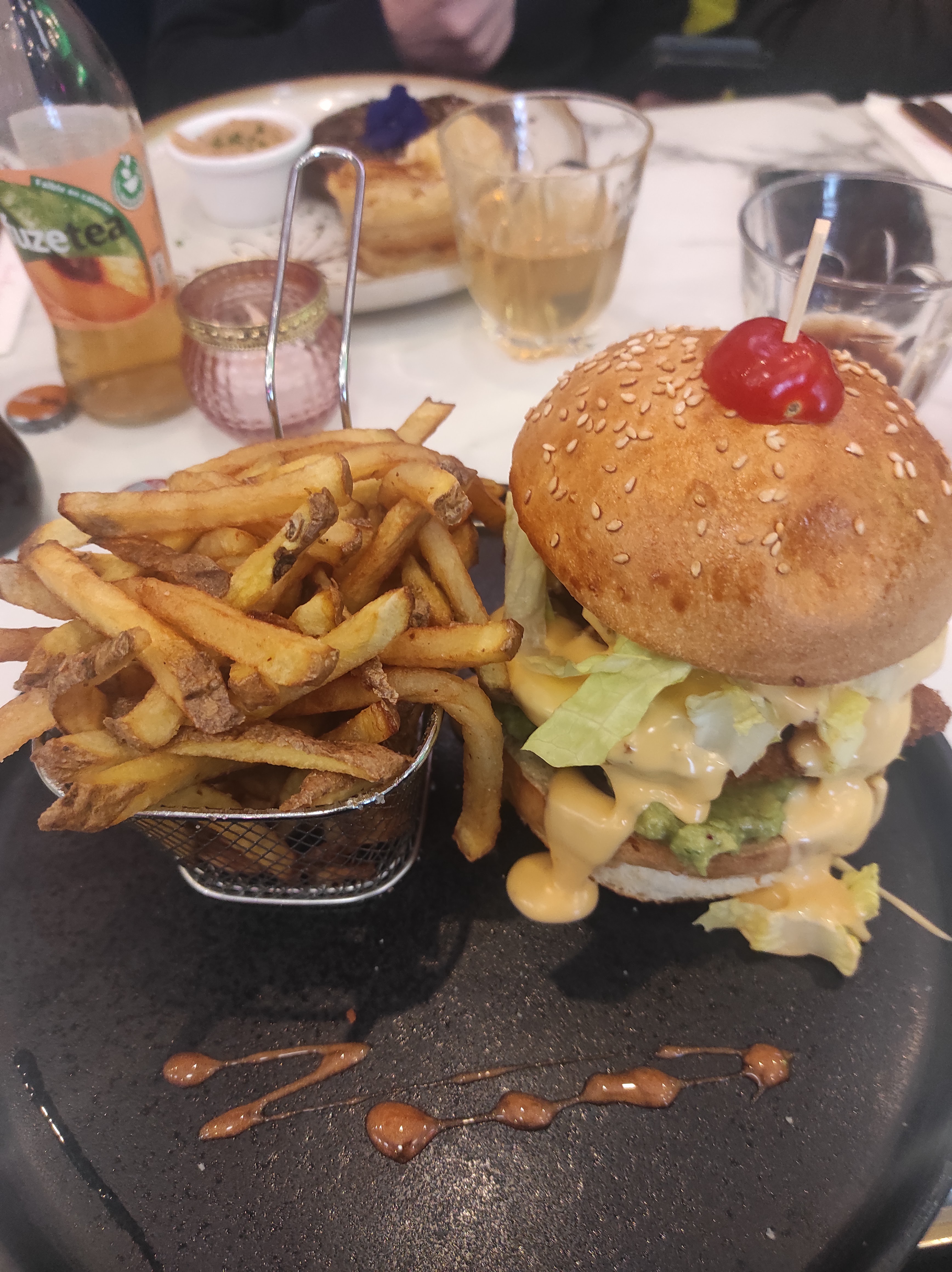 Bien dommage, les plats sont très bon mais quand tu viens à 6, que 5 personnes sont servis à 22h10, et qu’on est quand même allez voir les employés 2 fois pour savoir où était le 6iem plat, qu’on te réponde hyper désagréable que ça arrive. La serveuse qui part au bout de 15min sans rien dit et qu’on la vois revenir a 22h40 avec des pains à Burger caché. Donc en + on nous ment, on a fini nos plats que la 6iem personne n’est toujours pas servis. Plat arrivé à 22h47!!!!! J’ai jamais vu ça dans un restaurant ! Propose de changer de plat ! 37min de décalage entre nos plat et le sien. A oublier !!
