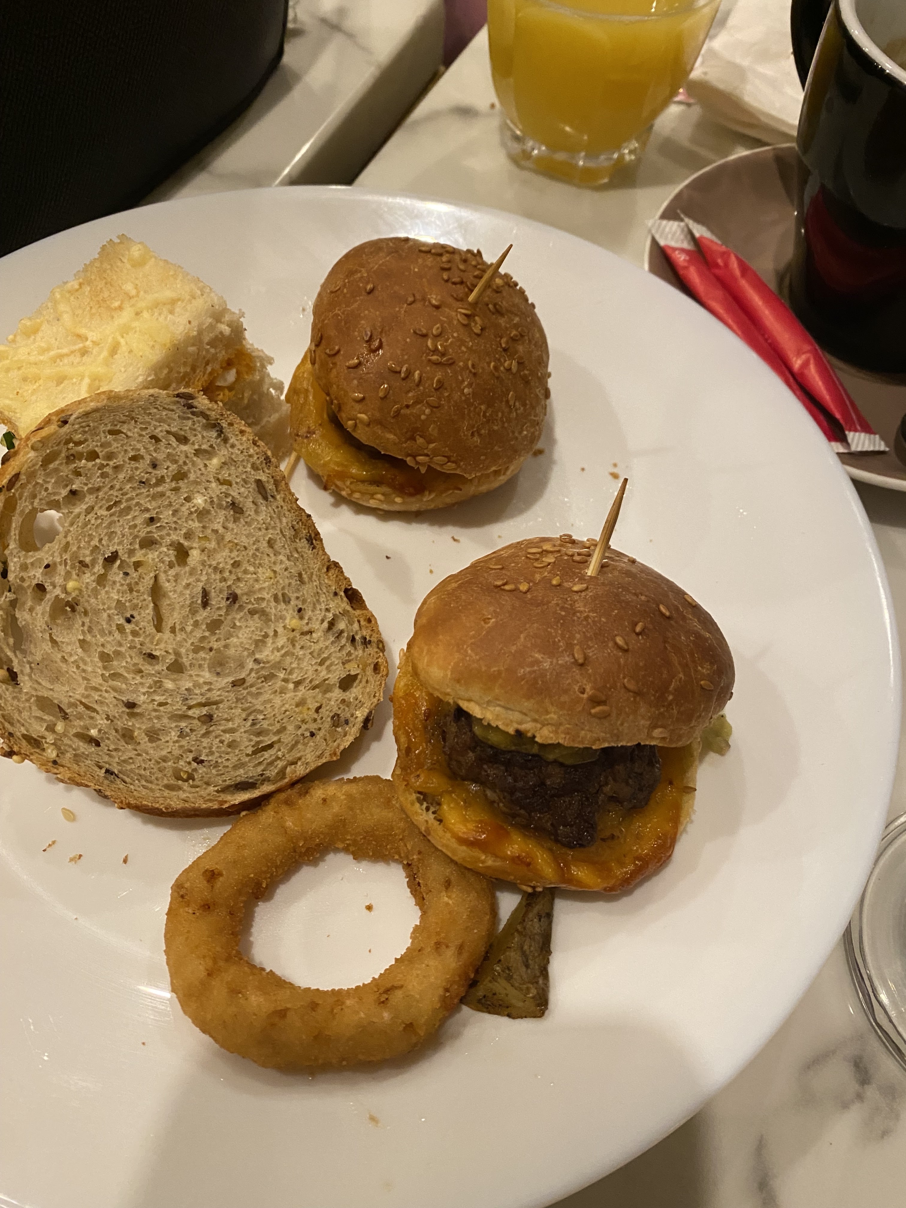 Superbe accueil, service au petit soins, très beau cadre. Bon cocktail, l'hamburger avec ses frites un délice. Le dessert un mélange de chocolat blanc et de mangue l'aspect est gélatineux mais bon en bouche.