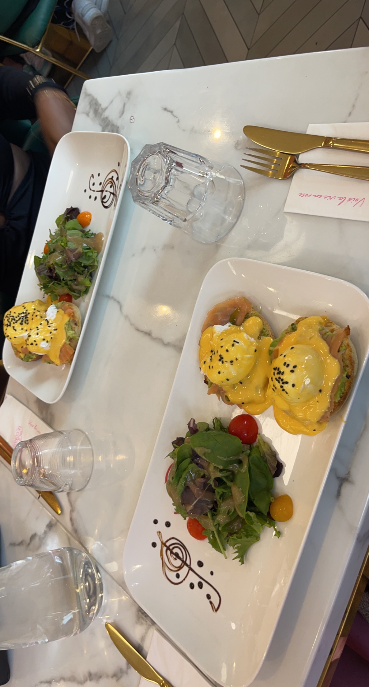 Bon accueil Décoration très girly Mais trop de fleur 🌷 tue la fleur… Carpaccio de Bœuf : 11,90€ Goût assez étrange que je ne serais l’expliquer mais il ne devait pas être très bien frais, bonne proportion de salade et parmesan 🥚 benedic 🥑: 10,90€ Dommage que le pain soit pas maison ou venant d’une boulangerie, l’avocat quasi absent en bouche … et pour le saumon je pense fortement que ça soit du congelé (au du moins de mauvaise qualité) au vu de la couleur et du goût Mauvais rapport qualité prix et les serveuses qui parlent assez fort entre elles est dérangeant … dommage