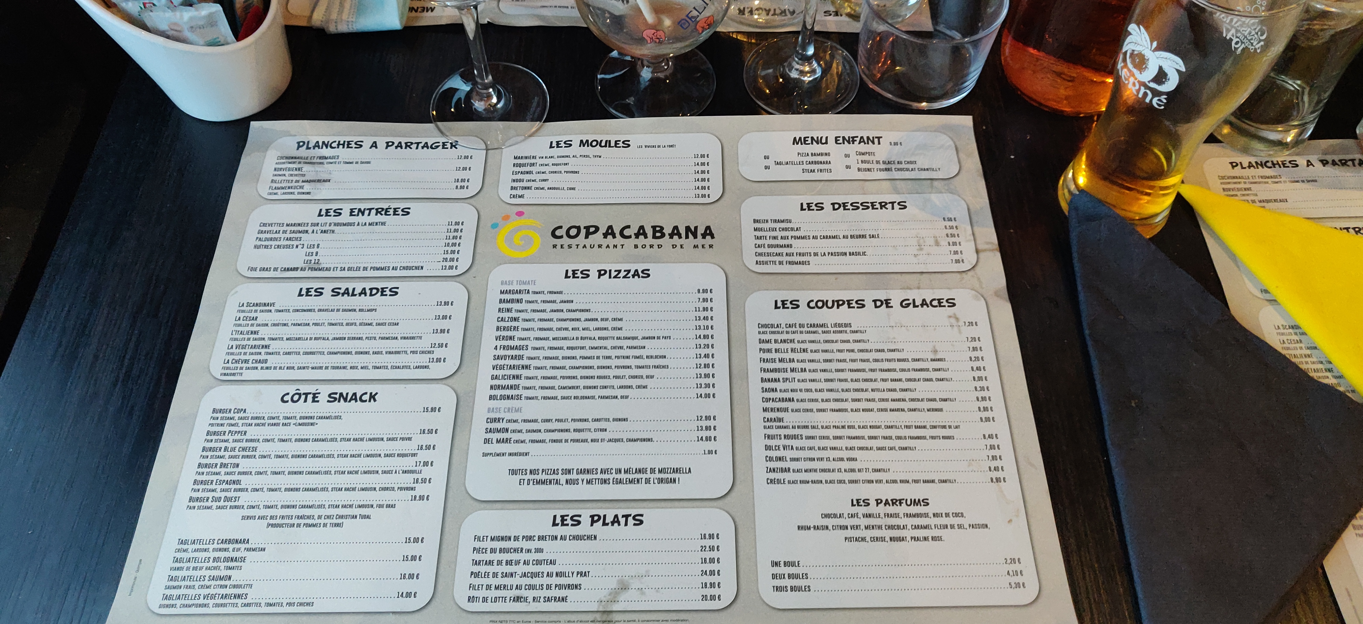 Nouveau nom '' copa cabana'' le lieux est vraiment superbe, la personne qui nous a accueillie, chaleureuse et avenante. Le seul petit bémol c'est que notre serveur était différent entres chaque plat, donc on venait nous demander notre commande après l'avoir déjà passée, et ça plusieurs fois de suite. C'était assez perturbant mais sinon plats correct, le dessert était énorme et étonnant