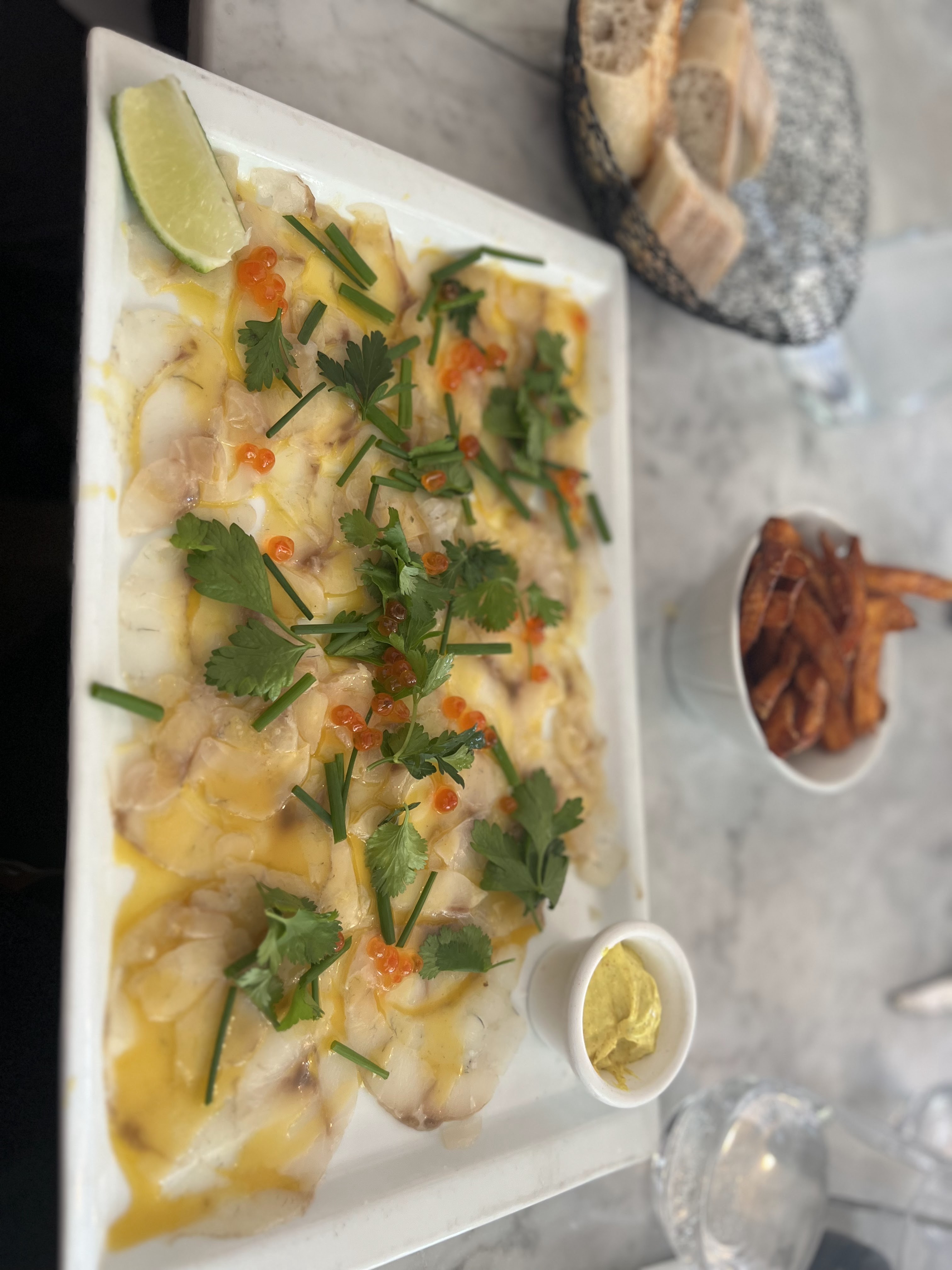 Très bon moment, carpaccio de bar accompagné de ses frites de patates douces un pur bonheur gustatif... service agréable et rapide, l équipe à l écoute 👍 On reviendra 👌