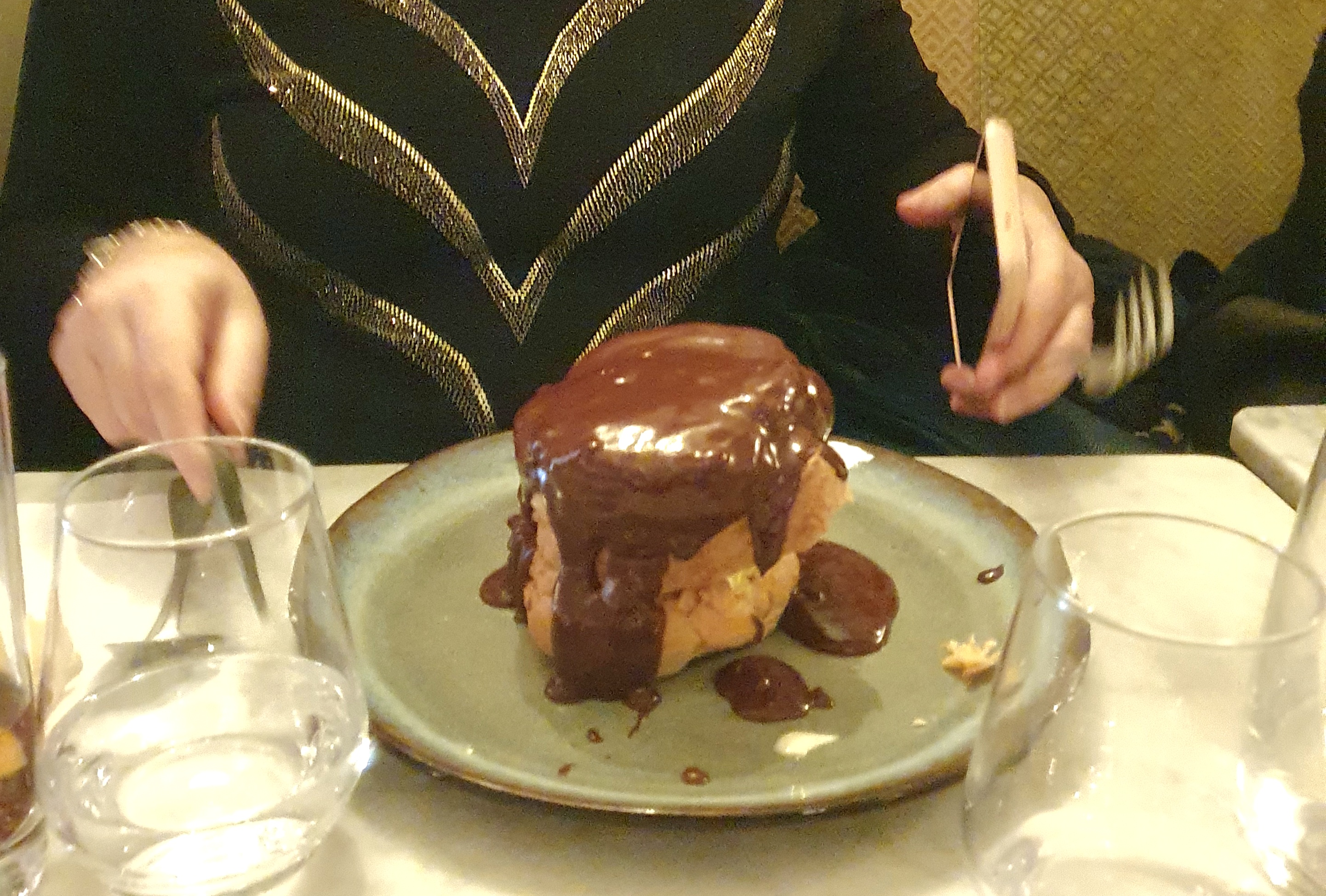 Bon repas. Profiteroles géantes à prendre pour 2. Réductions la fourchette à réclamer!!!