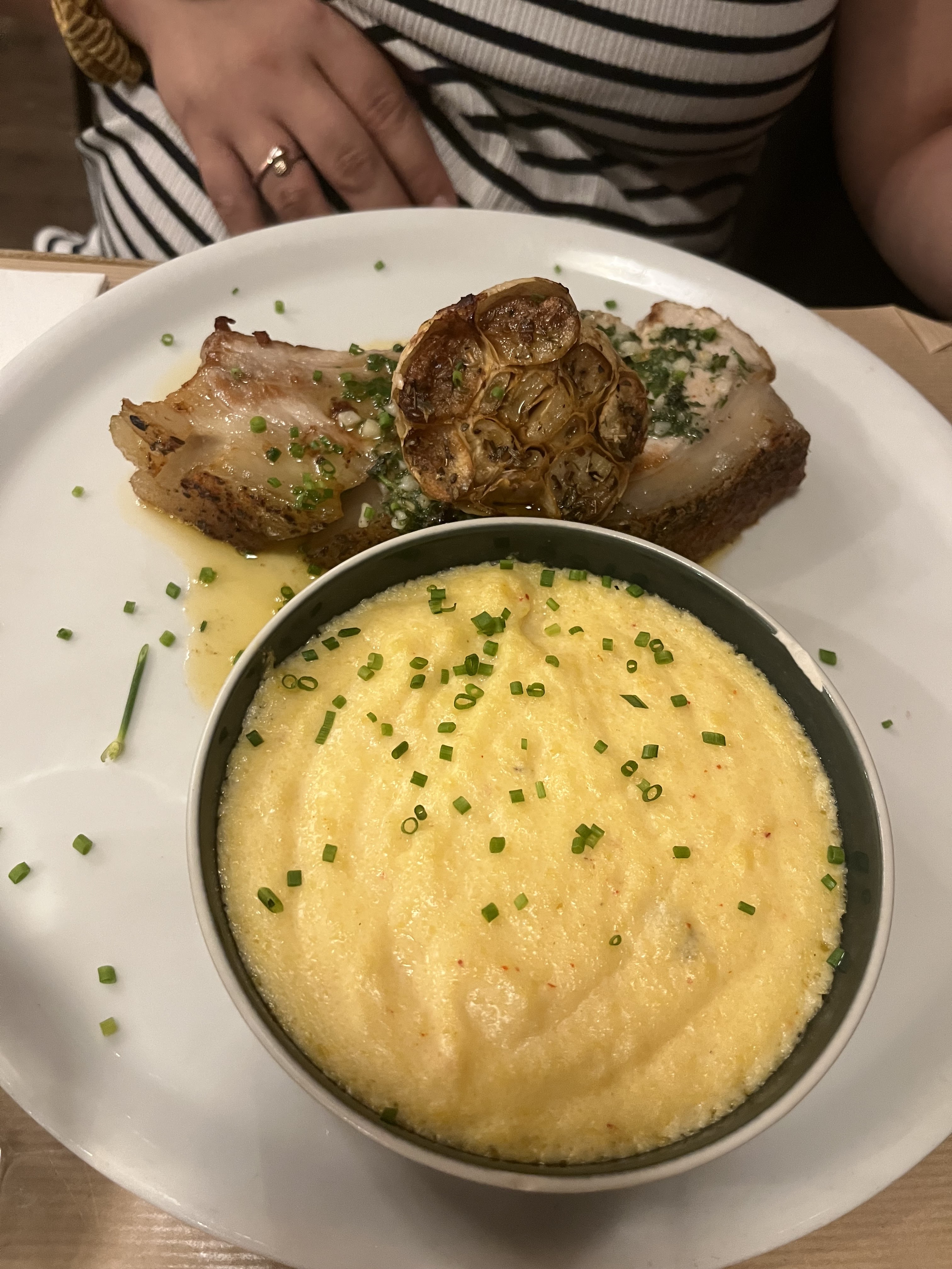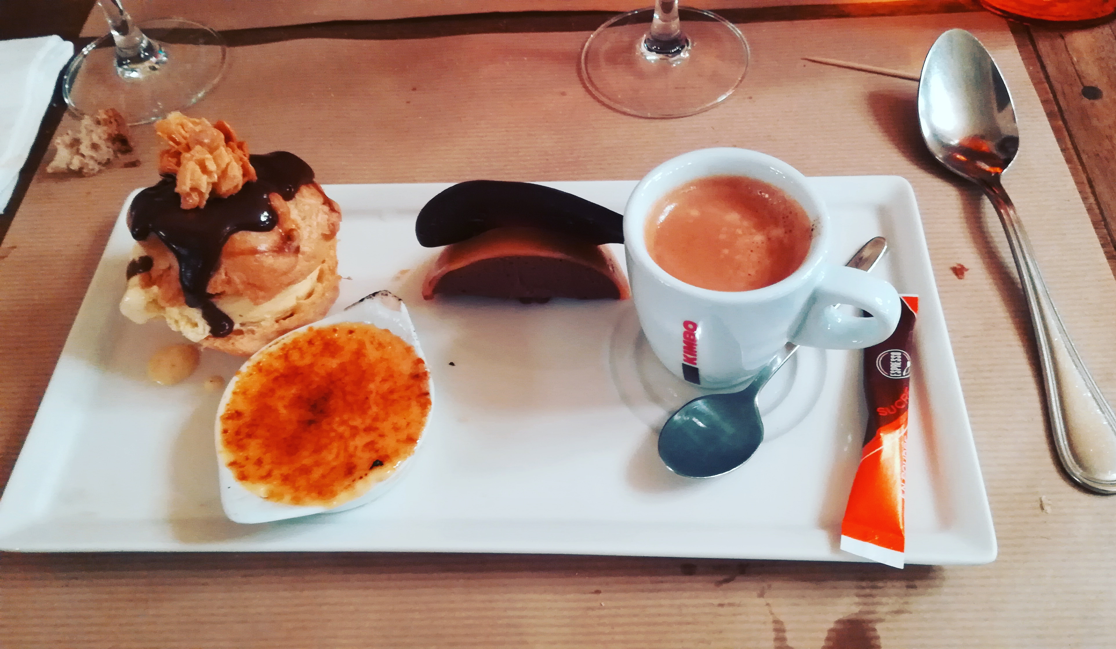 Ummm et bien les serveurs et serveuses sont super l'endroit est tres chaleureux, par contre j'ai trouvé les plats goûté et bon mais un peu trop salé a mon gout( le plat de charcuterie, le plat de la polenta aisi que le poisson ) et la crème brûlé pas sucrée du tout ! C'est dommage