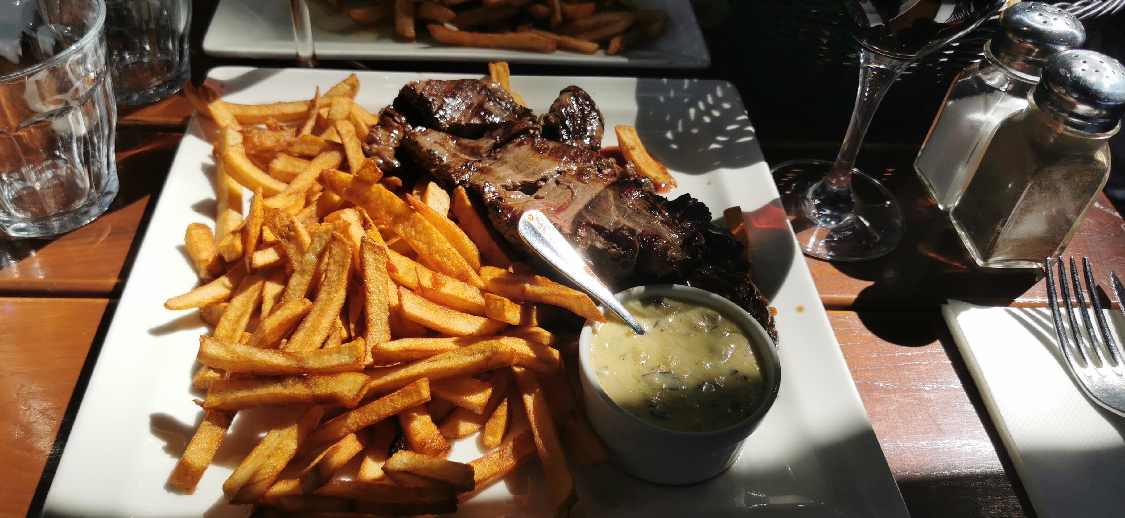 Idéalement situé et terrasse intelligemment exploitée. Accueil chaleureux et soigné, personnel attentif et souriant. Belle carte et beau choix de vins. L'entrecôte y est tout simplement parfaite. Merci pour cette jolie parenthèse, excellent déjeuner aujourd'hui grâce à vous.