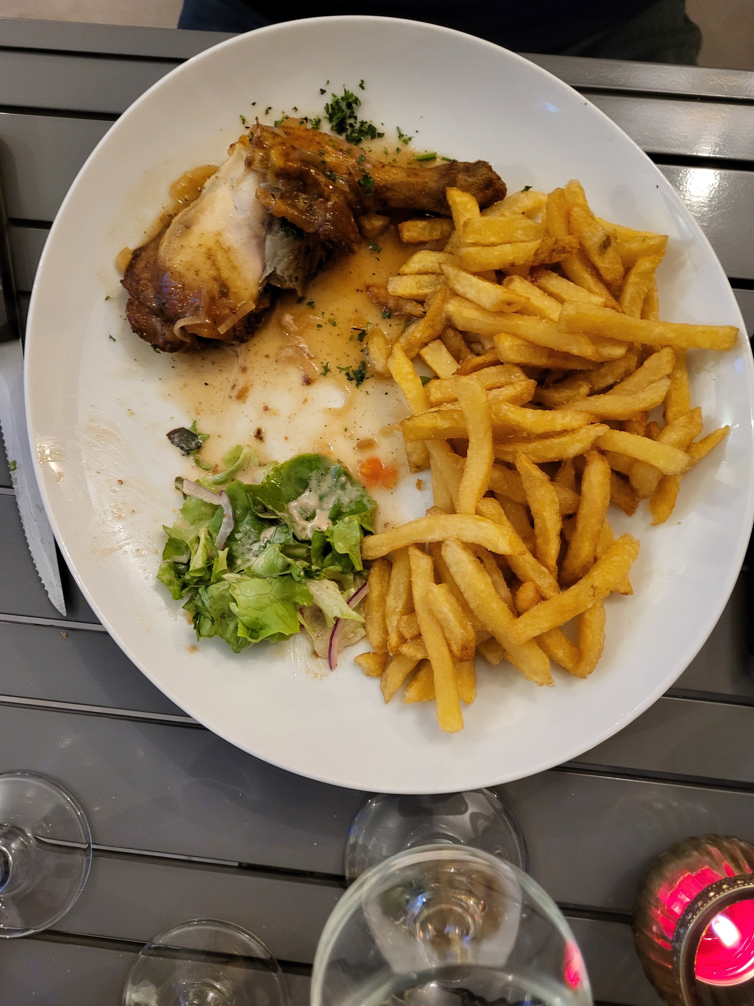 En direction du Havre, petite pause déjeuner à Honfleur au 🐓 coq enchaîné, accueil, service et repas excellent 👍 des Bretons de passage