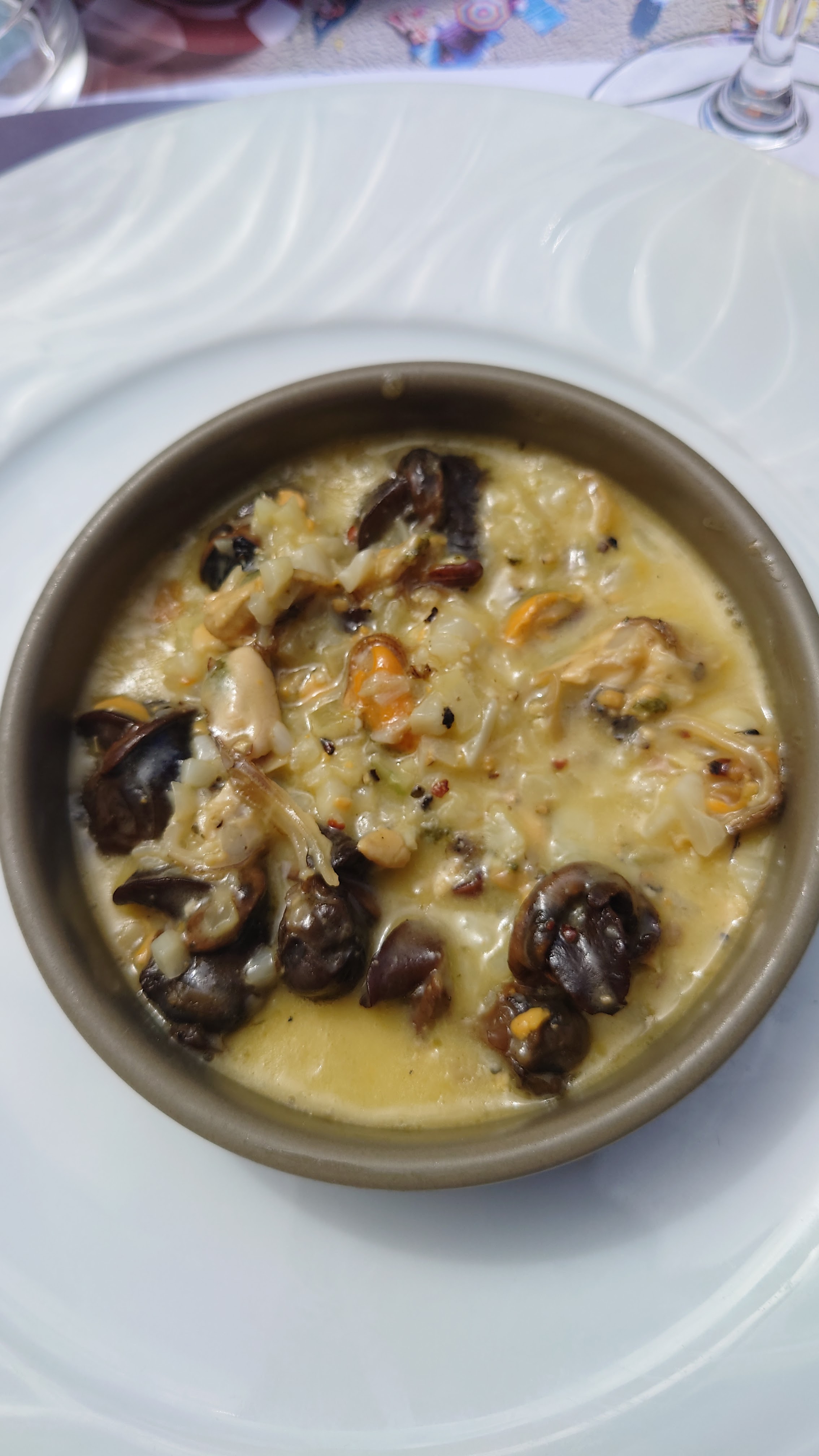 Le lieu (poisson du jour) délicieux, accompagnement également, le tout très copieux. Moules très bien cuisinées et grosses. Escargots avec moules en entrée goûteux. Frites maison sans aucun doute. Service actif et attentionné. Je retiens les sauces : escargots, moules crème, citron pour le lieu, Ambiance un peu triste. Un peu de musique en bruit de fond ?