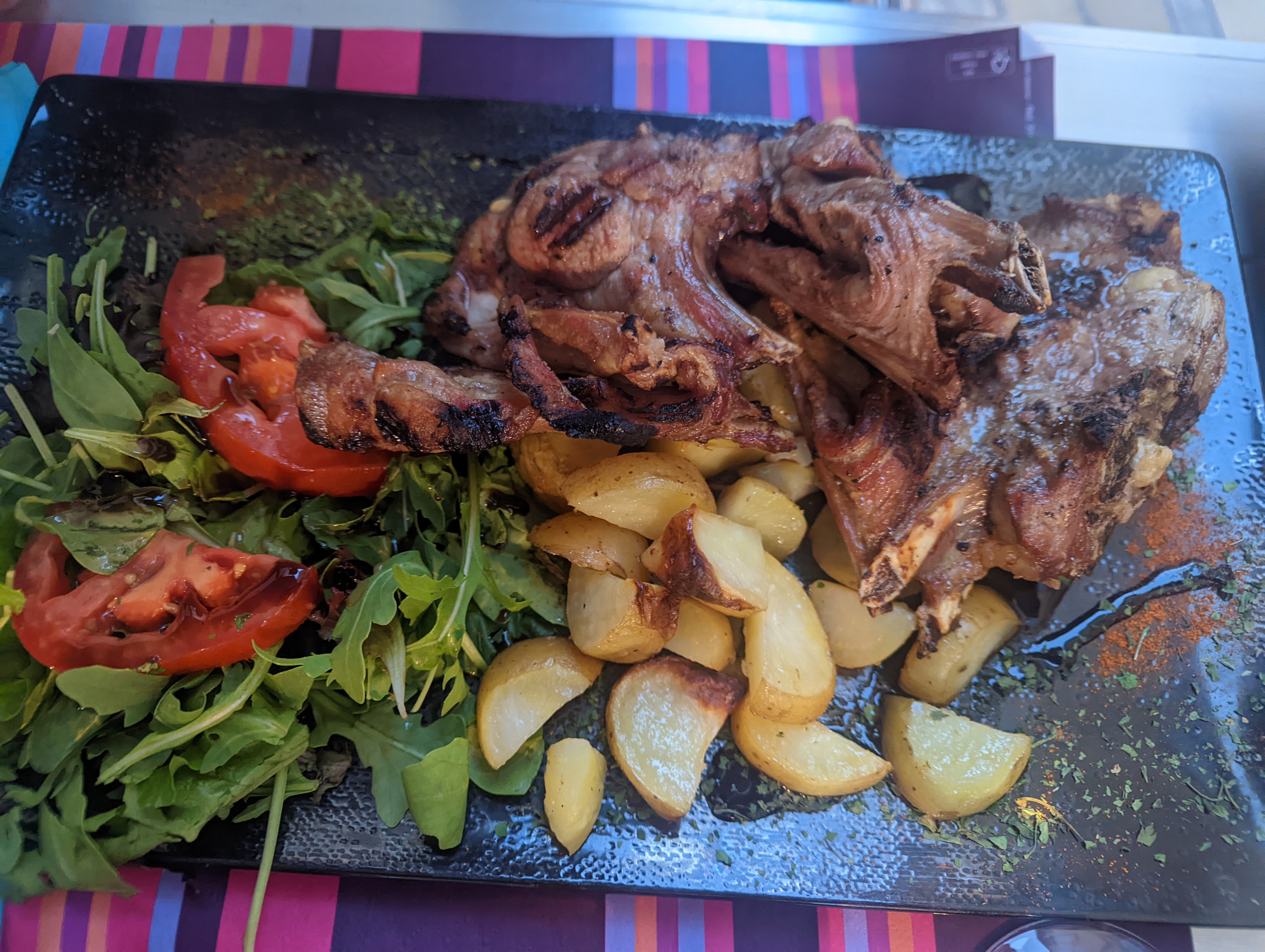 Nous nous sommes arrêtés là par hasard, et quelle belle surprise ! Une belle carte de viande, de poisson, de canard, ou de fruits de mer ! Le plat végétarien (des aubergines au parmesan) manquait de quantité mais les gambas grillées étaient excellentes ! Les desserts étaient tout aussi bon.
