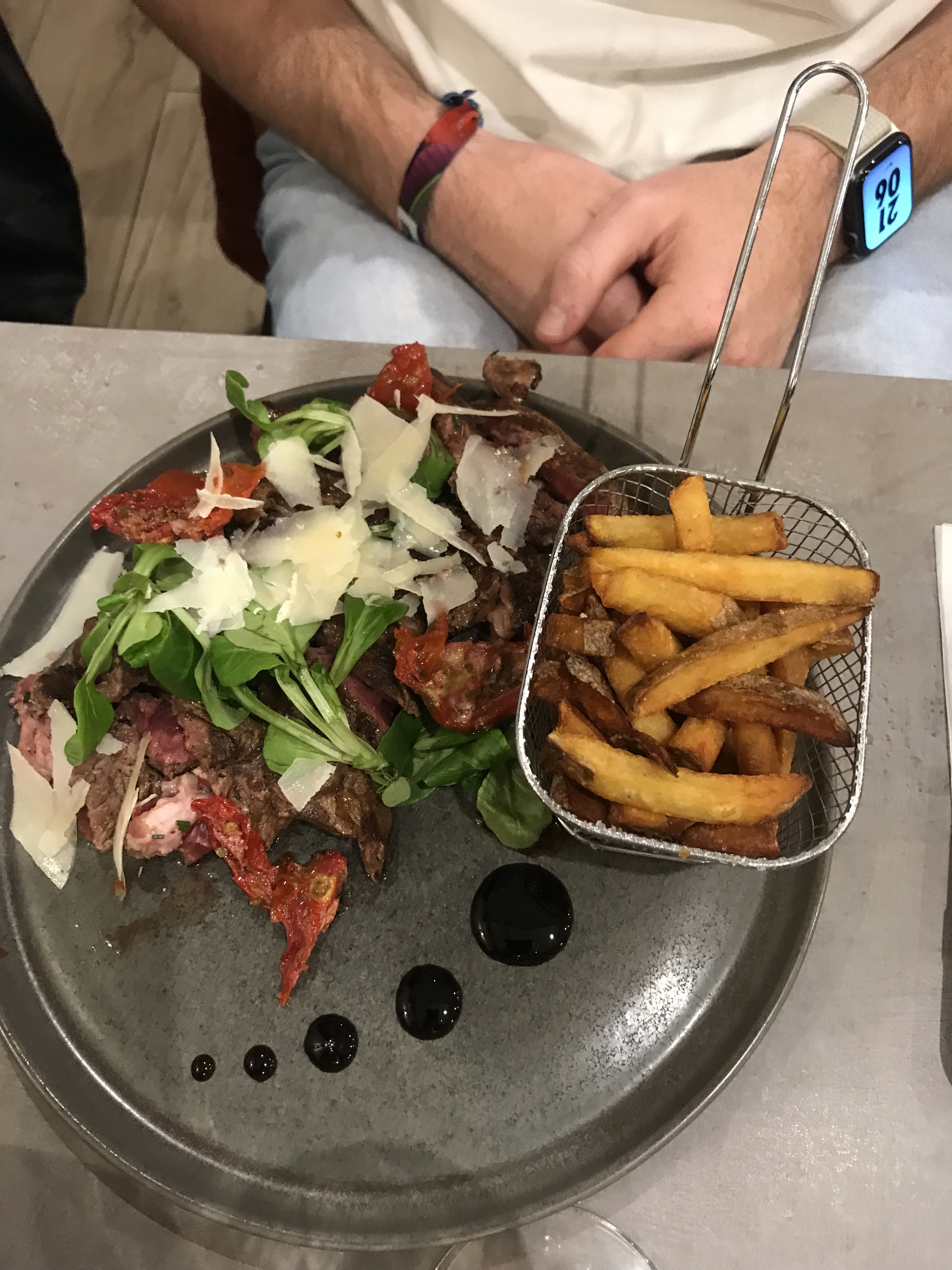 On a été manger à 6, globalement tout allait. Le service, l’ambiance, la décoration, la viande et les burgers top. Juste un énorme point négatif sur le « plat » végétarien, une salade très bof avec 4 morceaux d’oignon, de la tomate, du concombre… pas de sauce particulière, pas de saveur pour 16€.. Le pan con tomate assez liquide. Cependant on a passé un bon moment et c’est le principal au final (puis y’a le geste d’au moins proposer quelque chose de VG ce qui n’est pas toujours le cas hors grande ville).