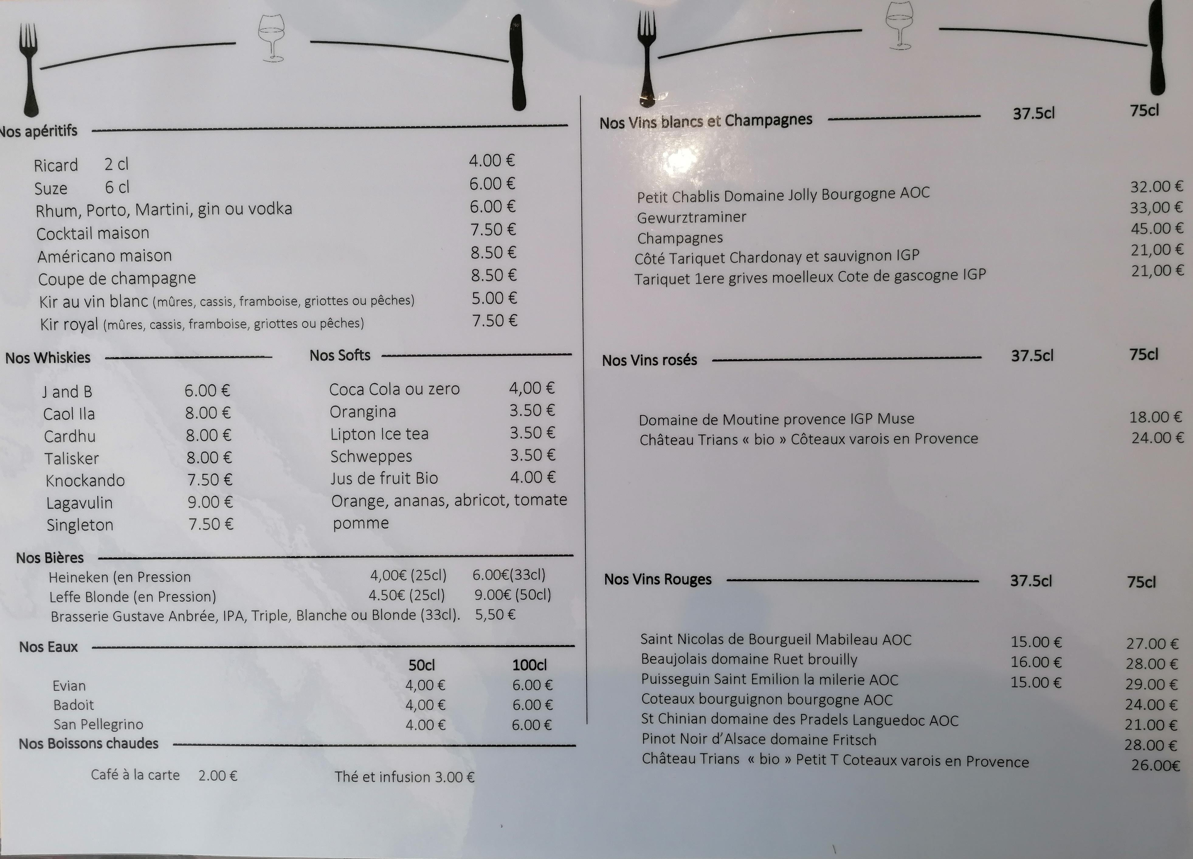 Nous ne connaissions pas et avons été enchantés Accueil chaleureux, accepte gentiment les chiens, et une cuisine très bonne pour un prix super correct De ce fait sur notre semaine de vacances nous y sommes allés 2 fois À noter. Sur la tranche de prix par personne choisie nous avons pris un apéritif entrée plat et dessert une bouteille de vin et café Franchement nous y retournerons