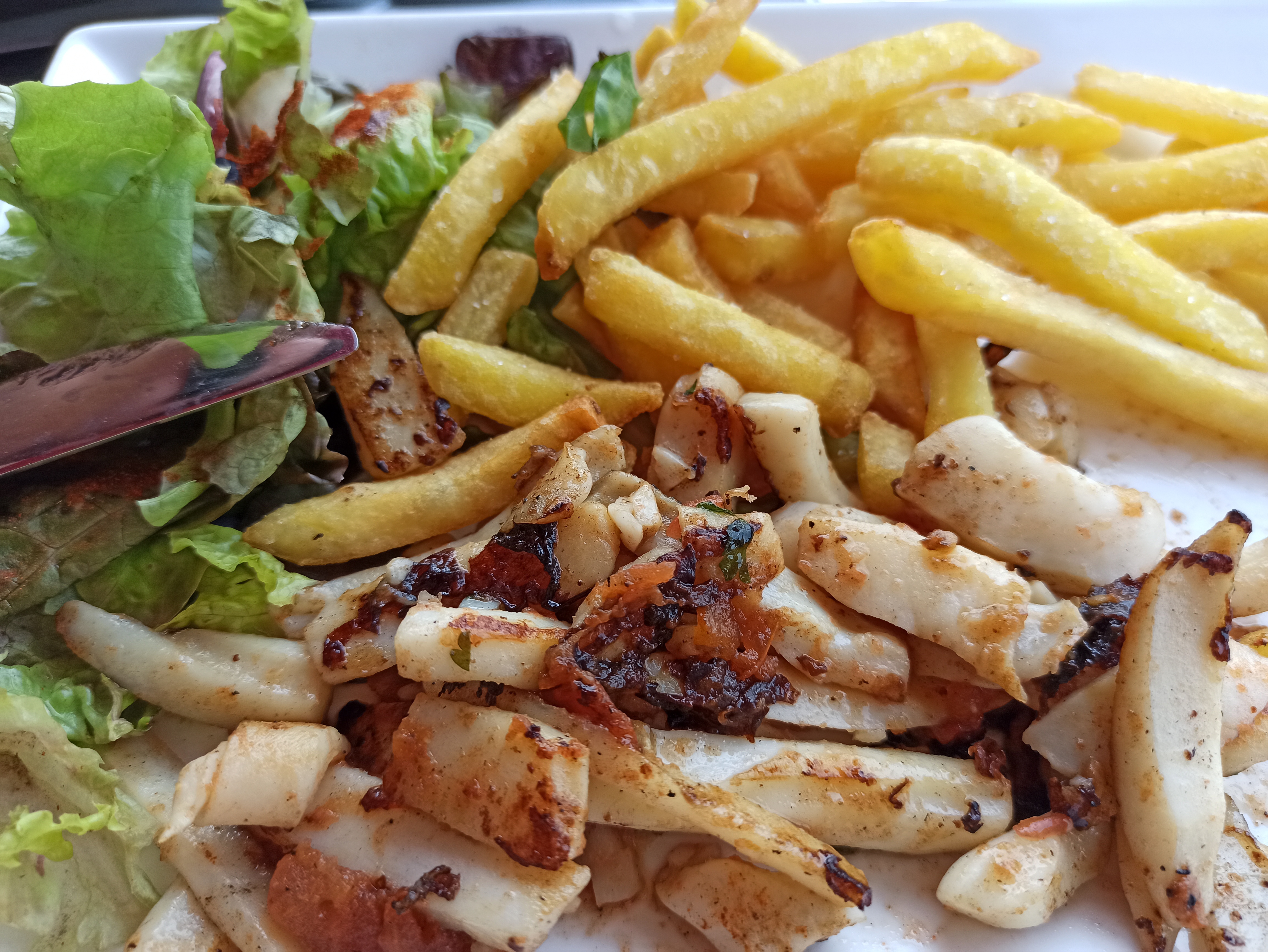 Repas traditionnel très bon. Sauf que la parillada de poissons n'a jamais présenté d'encornets mais de la seiche beaucoup moins chère et caoutchouteuse. Rien a voir avec les encornets qui sont chers. Attention à vos appellations.