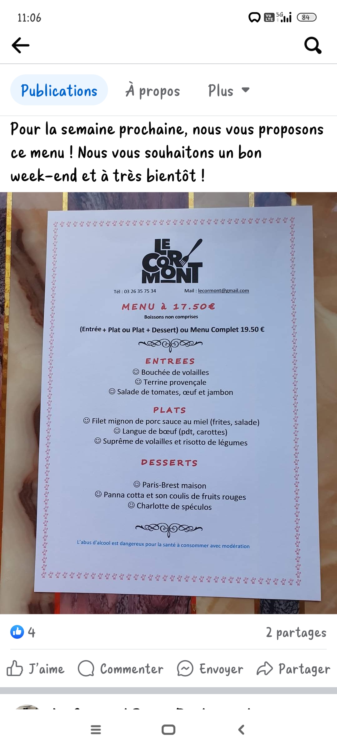 L'accueil est chaleureux. Le repas est bon, copieux avec un tarif très correct. J'y retournerai un vendredi pour les moules frites. Continuez sur cette voie