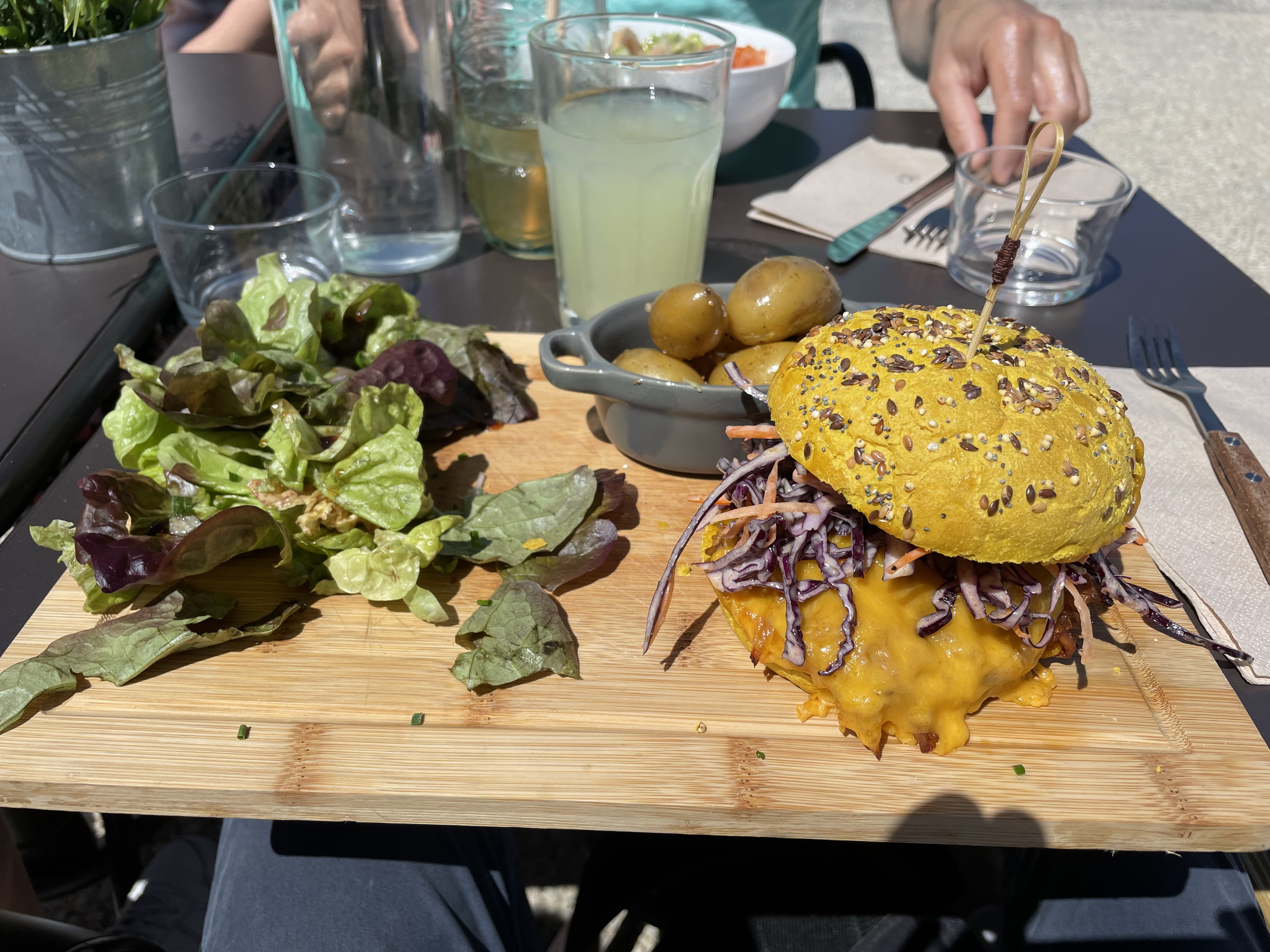 Succulent Burger divin Tarte succulente. Vue superbe Cheese cake ouaaaahhhhh A refaire Prévoyez un petit coupe vent en terrasse