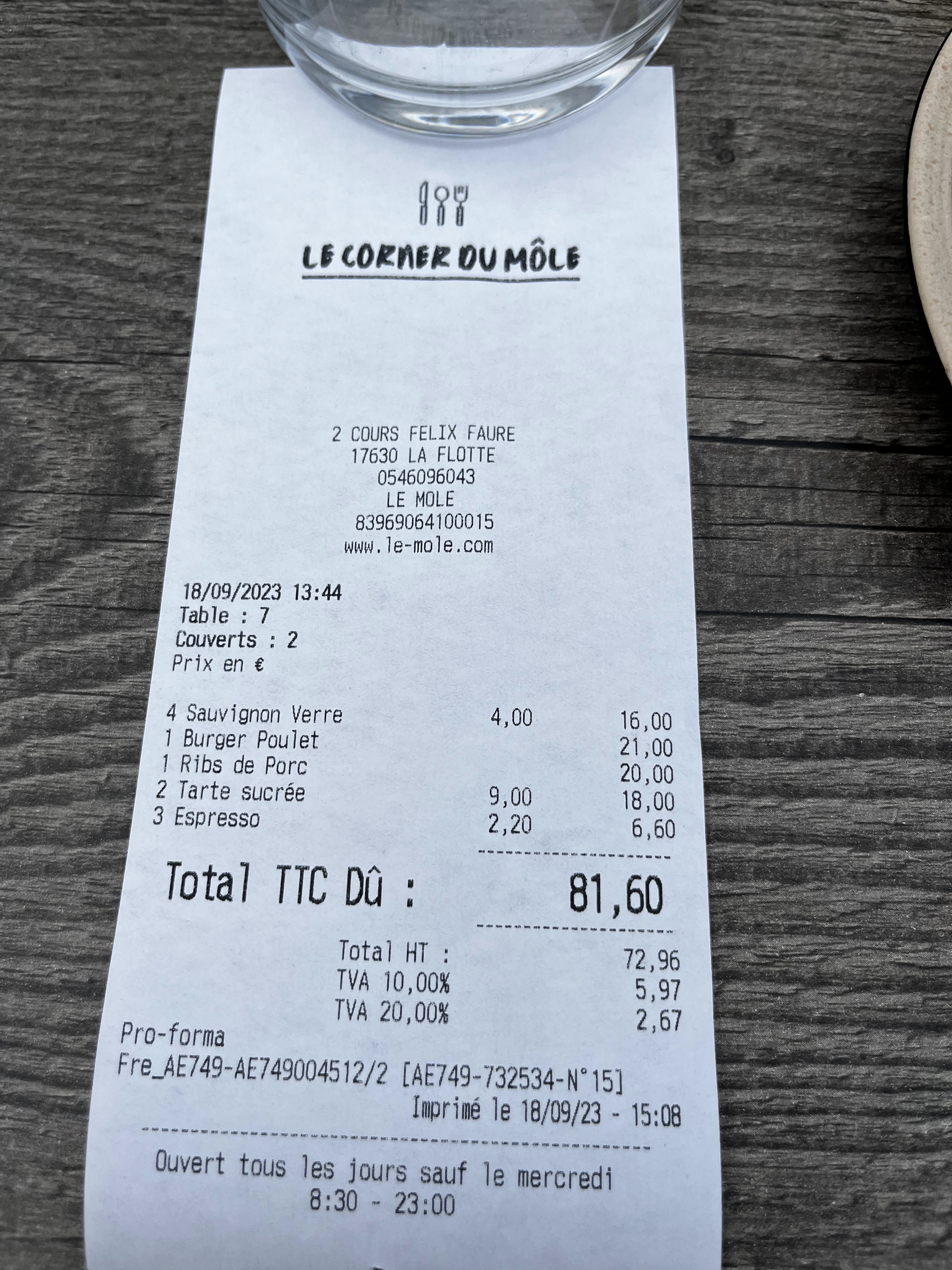 Une valeur sûre ! Nous étions venus au Corner du Môle en 2021, on s’y était déjà régalé. Nous voici en 2023 et c’est toujours aussi délicieux ! Les huîtres étaient archi fraîches. Les moules au curry sont de loin les meilleures de l’île. Quant à la nouveauté : le burger … une tuerie ! Les tartes sucrées en dessert : des petites bombes. Le cadre est chouette et le service convivial et chaleureux. Bravo à toute l’équipe et rendez-vous en 2024 !