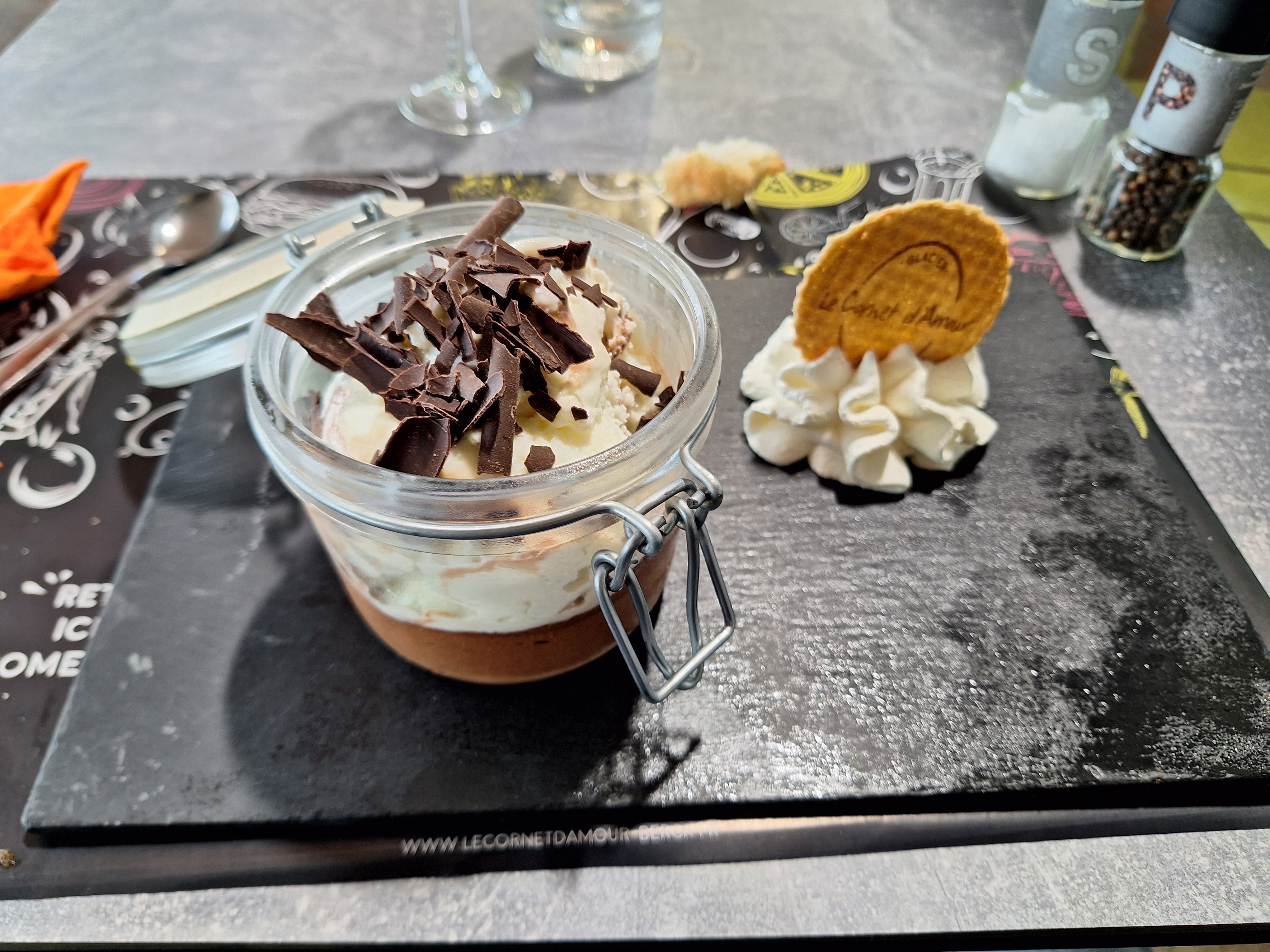 Nous sommes venu manger au cornet d’amour pour nos 7 ans de couple. C’était très bon, un très bon accueil, les serveuses bien gentilles. Nous y retournerons les yeux fermés !