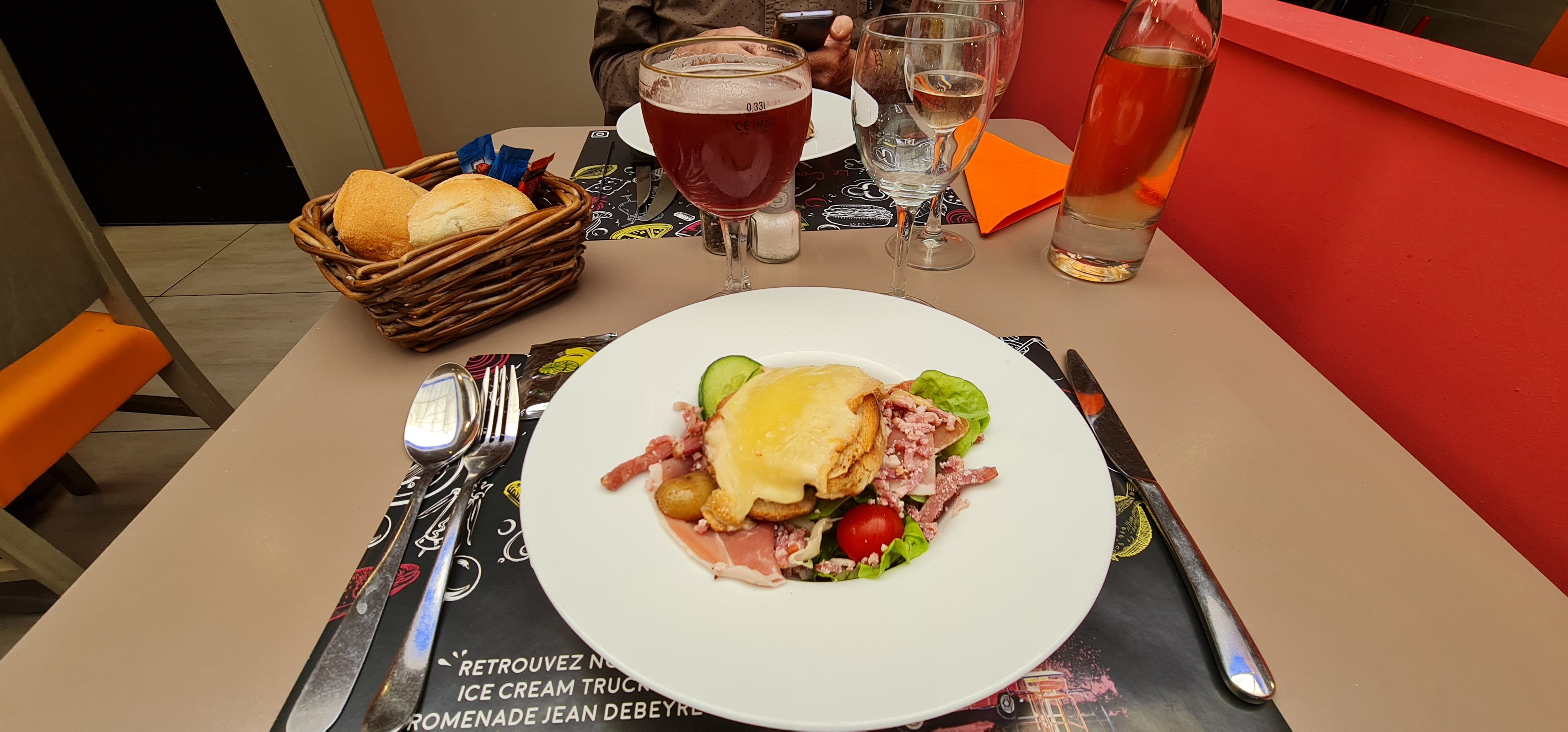 Ce que je retiens et qui vaut vraiment vraiment le détour, la crepe normande, super bonne. Par contre, les frites, bof. La flammekeuche classique, basique. En bref un passage mitigé.