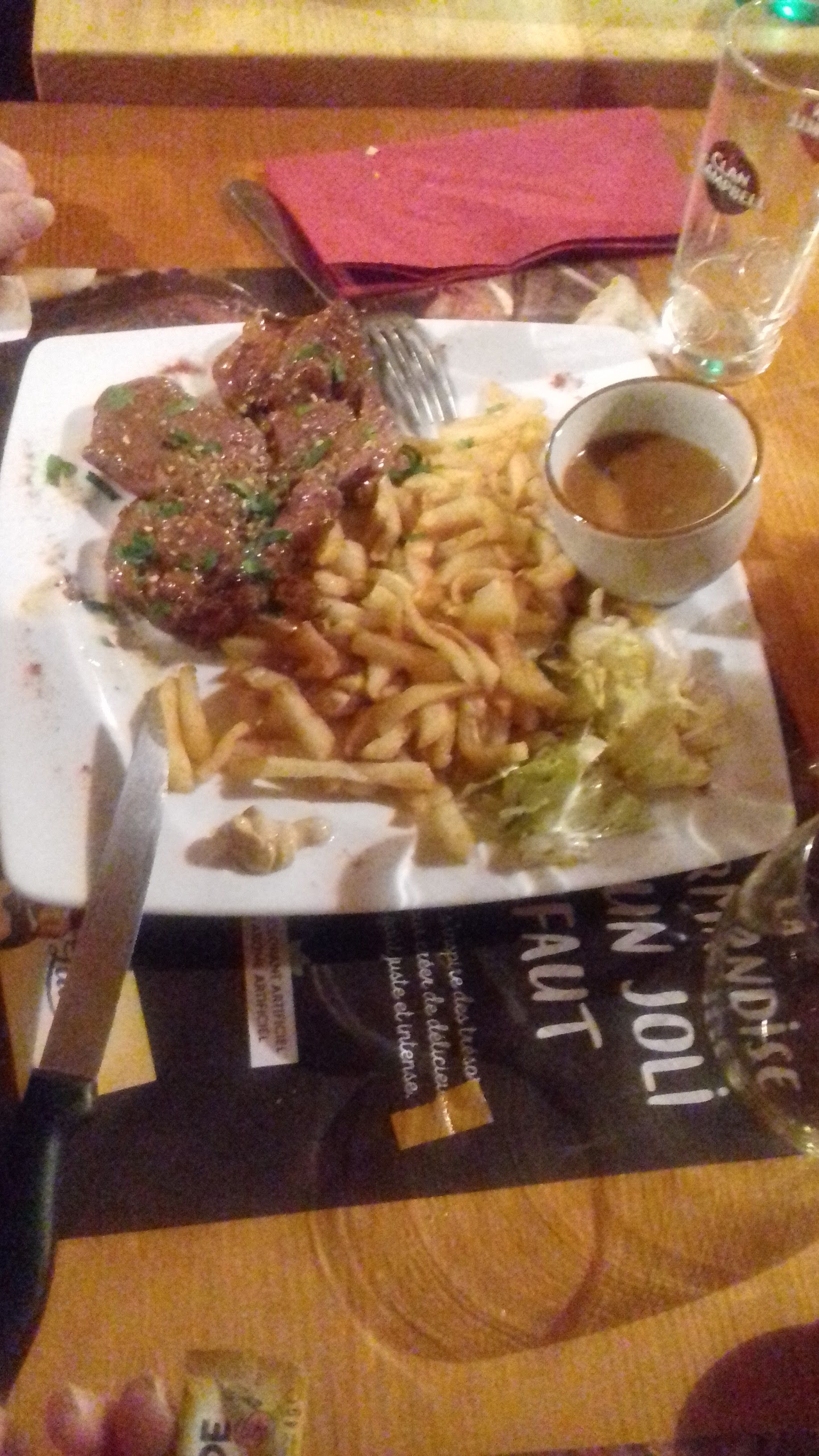 Bar du village. Repas copieux, cuisine simple, bon rapport qualité prix. Les frites un peu molles et grasses