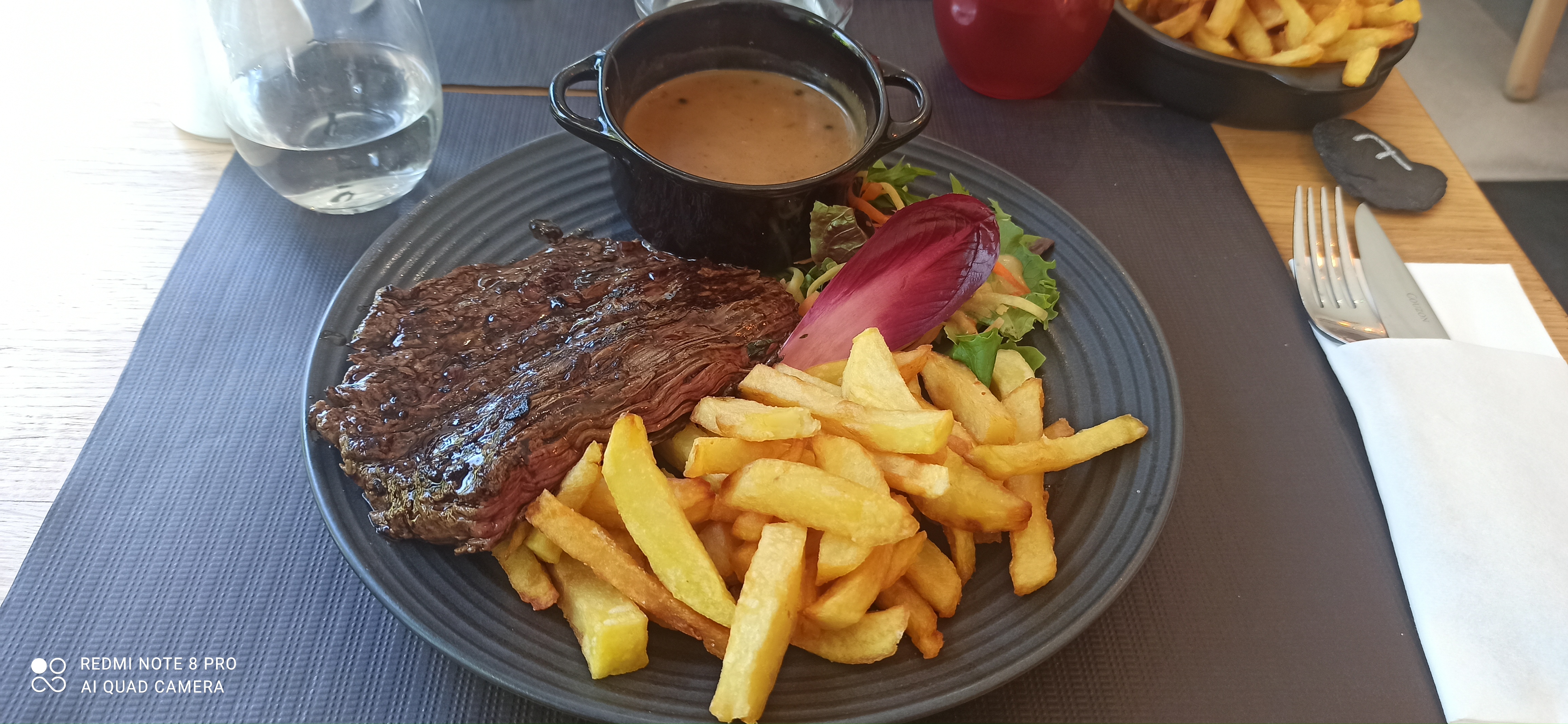 Je déconseille fortement le restaurant. Il est indiqué dans la carte que tout est fait maison mais les frites étaient surgelés sa se voyait. Le canard avait vraiment un goût bizarre ça n’avait pas le goût du canard, il était très foncé alors que normalement c’est rosé. Alors je ne sais pas si c’est la qualité du canard ou sa cuisson. Je n’ai rien mangé de l’assiette. On nous propose un dessert, on nous précise même pas qu’il y a de l’alcool dans la mousse au chocolat, il y en avait trop en plus, et la mousse était compacte. 50€ plats+ dessert à 2, très cher pour ce qu’on avait dans l’assiette