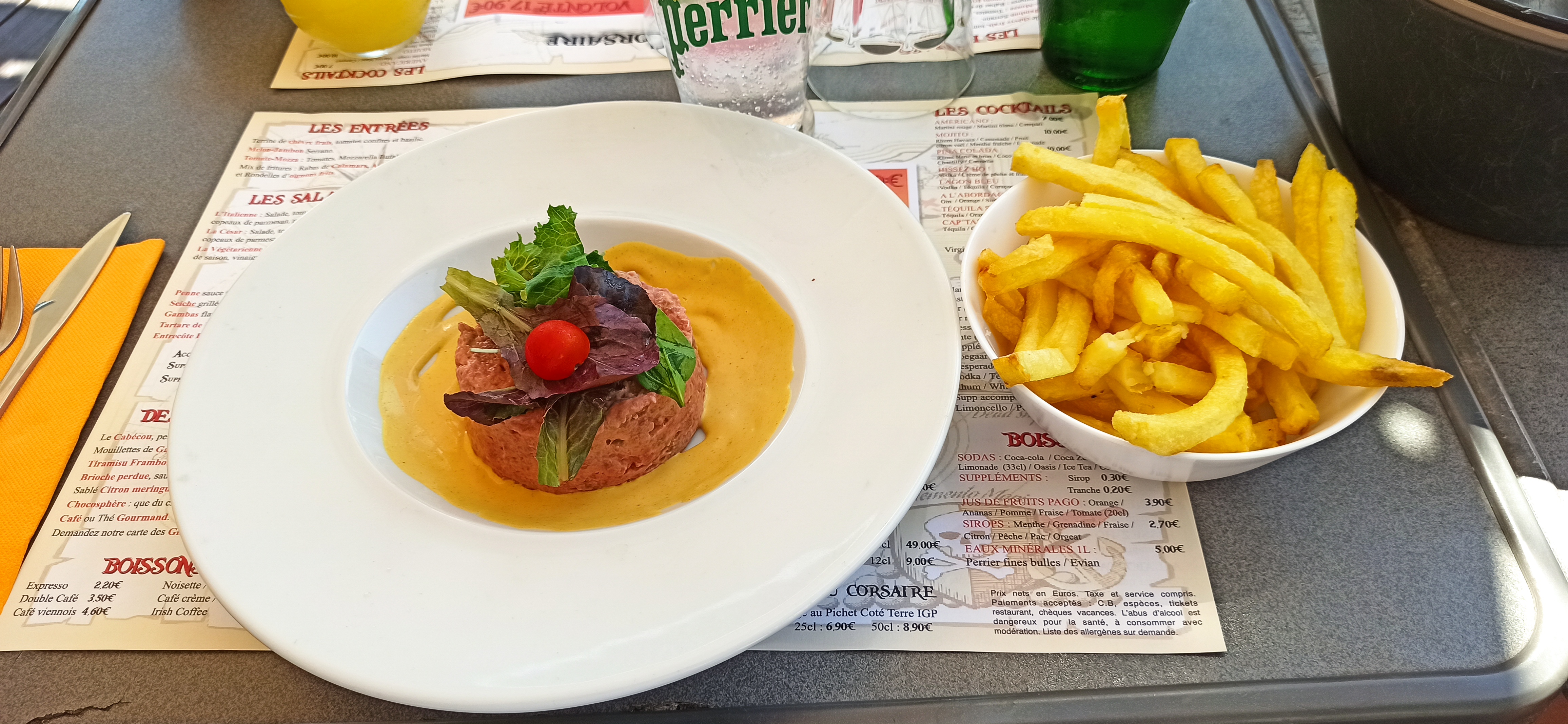 Nous nous sommes rendus au corsaire suite aux avis positifs sur le web, mais nous sommes déçus, les moules n'étaient pas assez cuites c'est dommage, la demande de nouvelles cassolettes ont mis du temps a arriver. C'est comme une nouvelle demande de barquettes de frites, nous les attendons toujours actuellement... La sauce corsaire est une sauce vraiment très bonne, une bonne découverte. Les glaces sont super bonne, elles ont du goût Les serveurs sont souriants, sympathiques