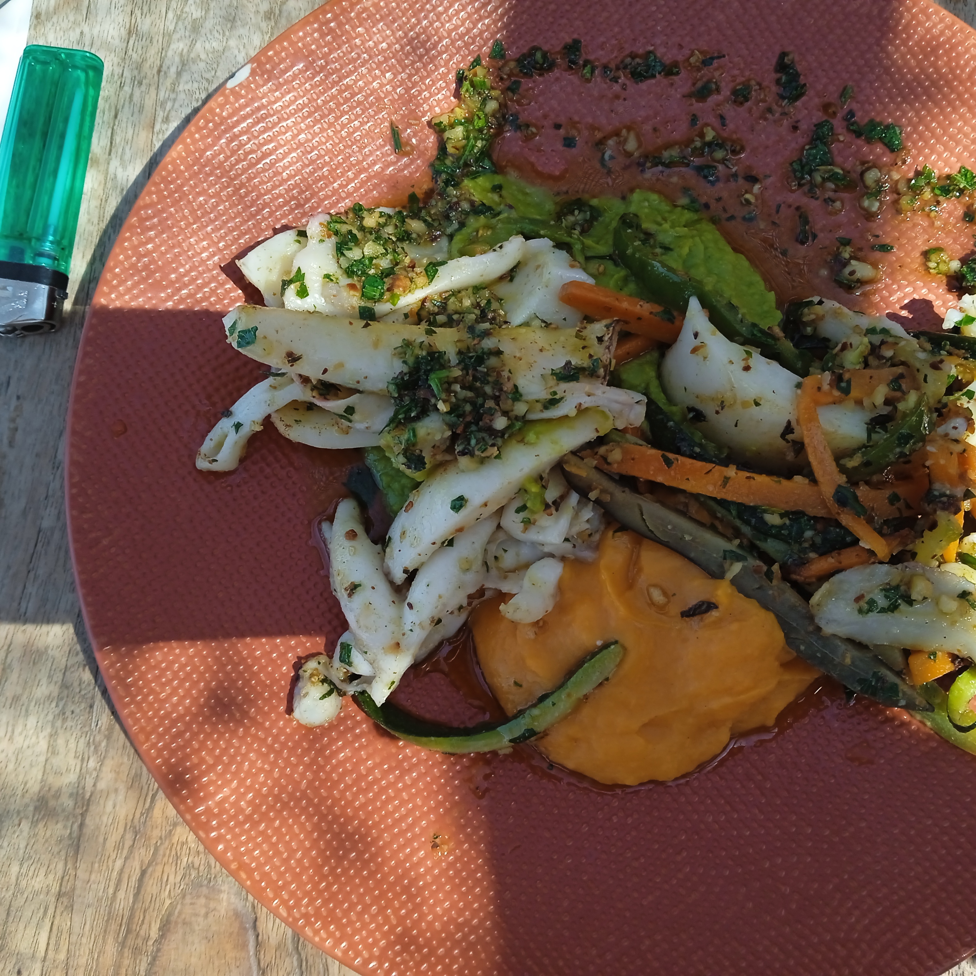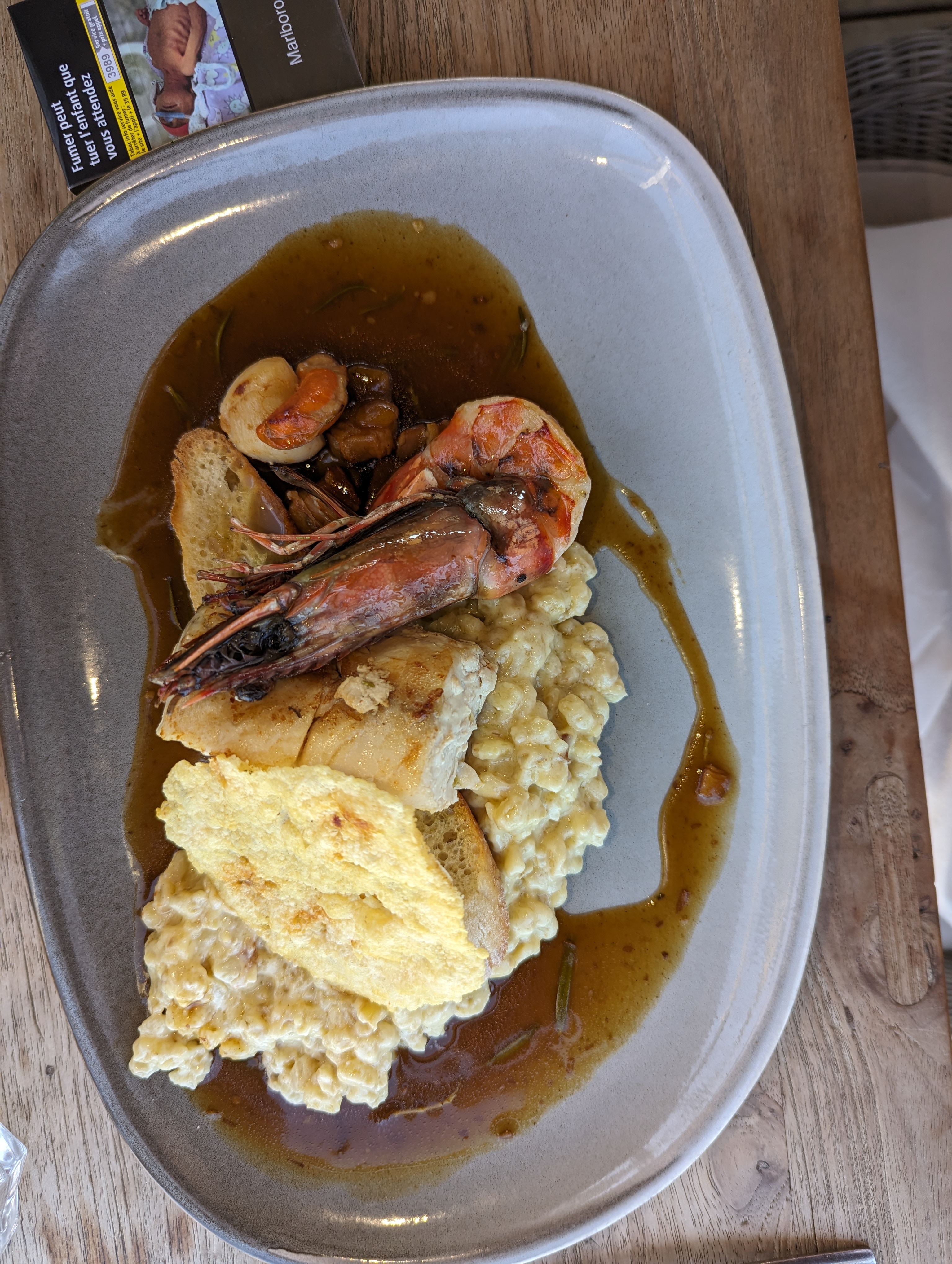 Cadre splendide. Ambiance très cool. Service très sympa. Mais moules pas assez de goût à notre goût (très relatif).😊 A priori c est la saison qui veut ça. Nous reviendrons goûter d'autres plats