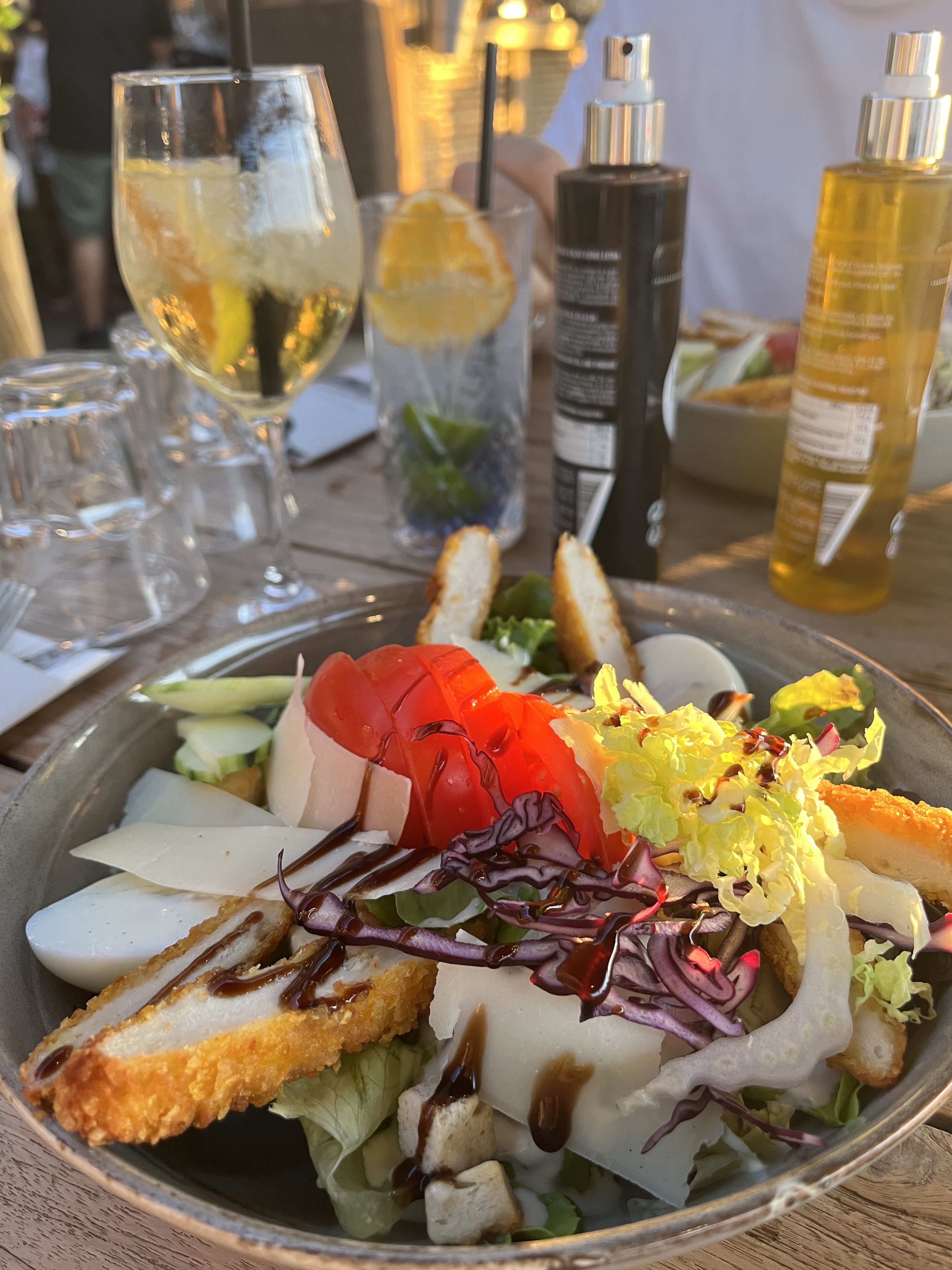 A part la jolie situation en bordure de plage, il faut faire attention à ce que l on choisit car selon les plats cest l arnaque totale attrape touriste!! Ne surtout pas choisir les salades qui sont très mal garnies, ingrédients au rabais et finalement que de l herbe a vache..ou salade verte! Tres cher pour le contenu. Moules frites pizza burger passent encore.. Au final moyen moyen..