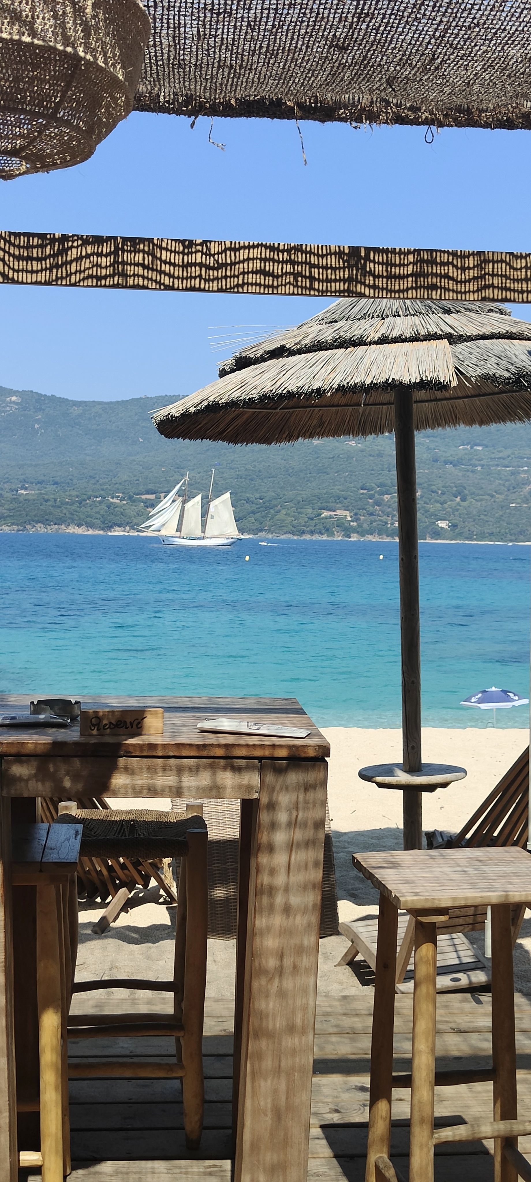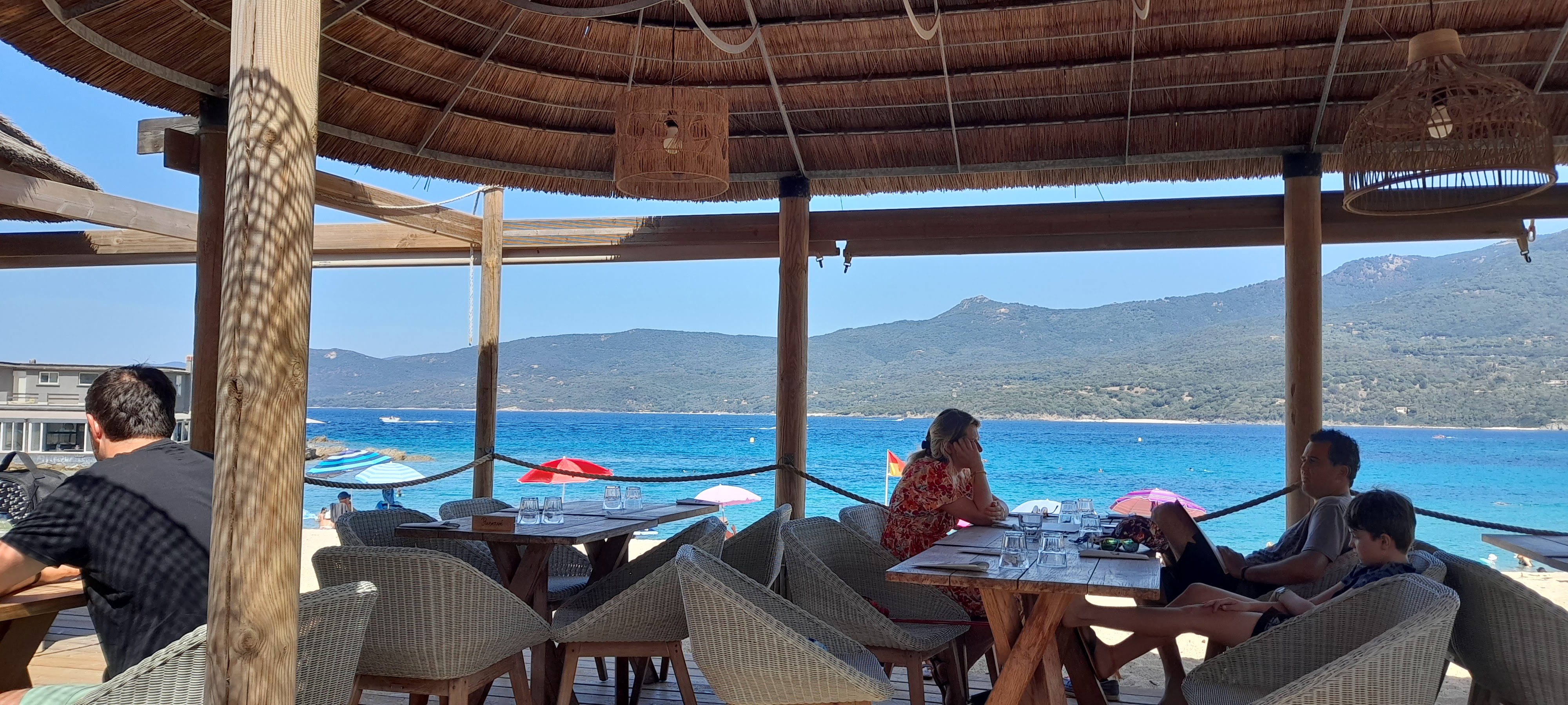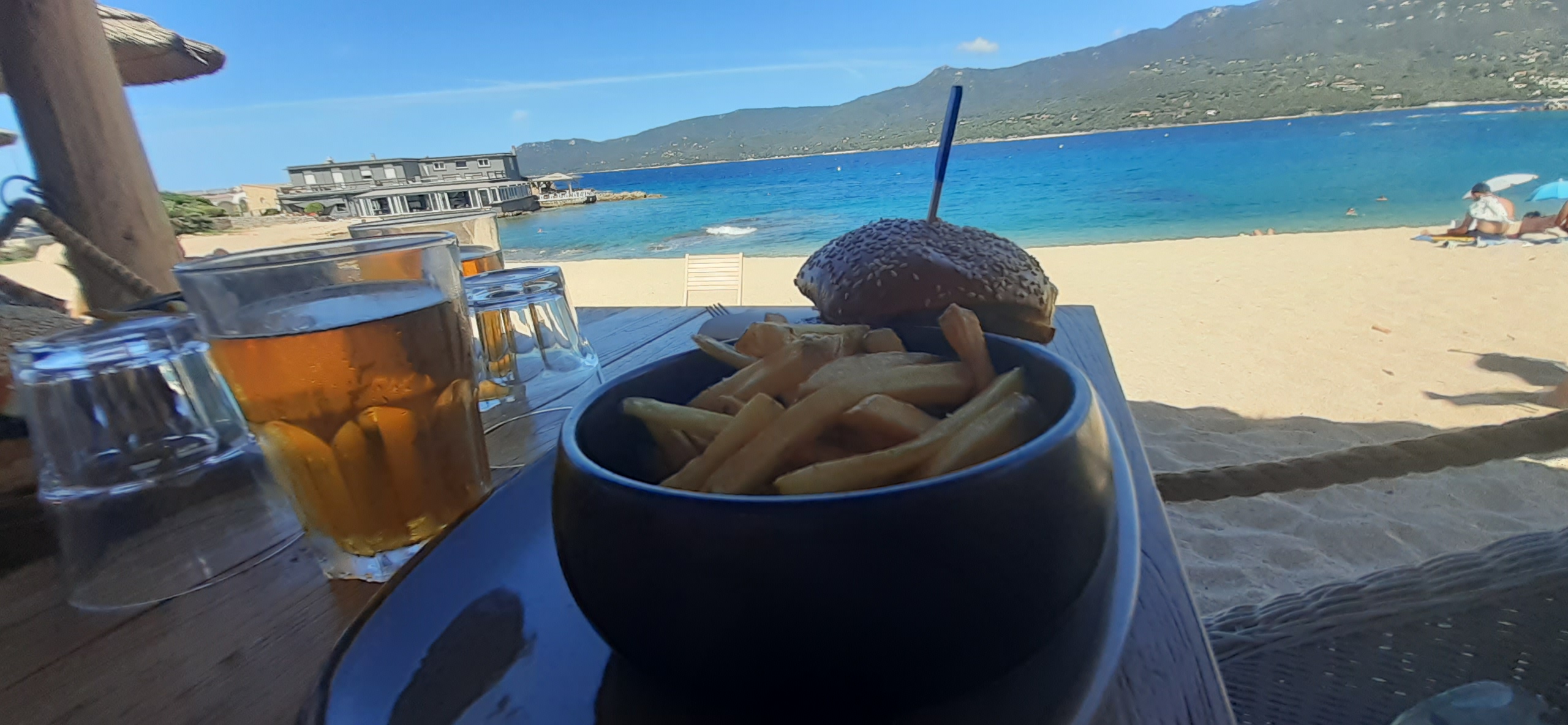 Restaurant de plage les pieds dans le sable, côté cuisine rien d extraordinaire ce n’est pas Le meilleur hamburger corse que j’ai mangé,les crêpes étaient bonnes mais le café gourmand (industriel)dommage …sans plus