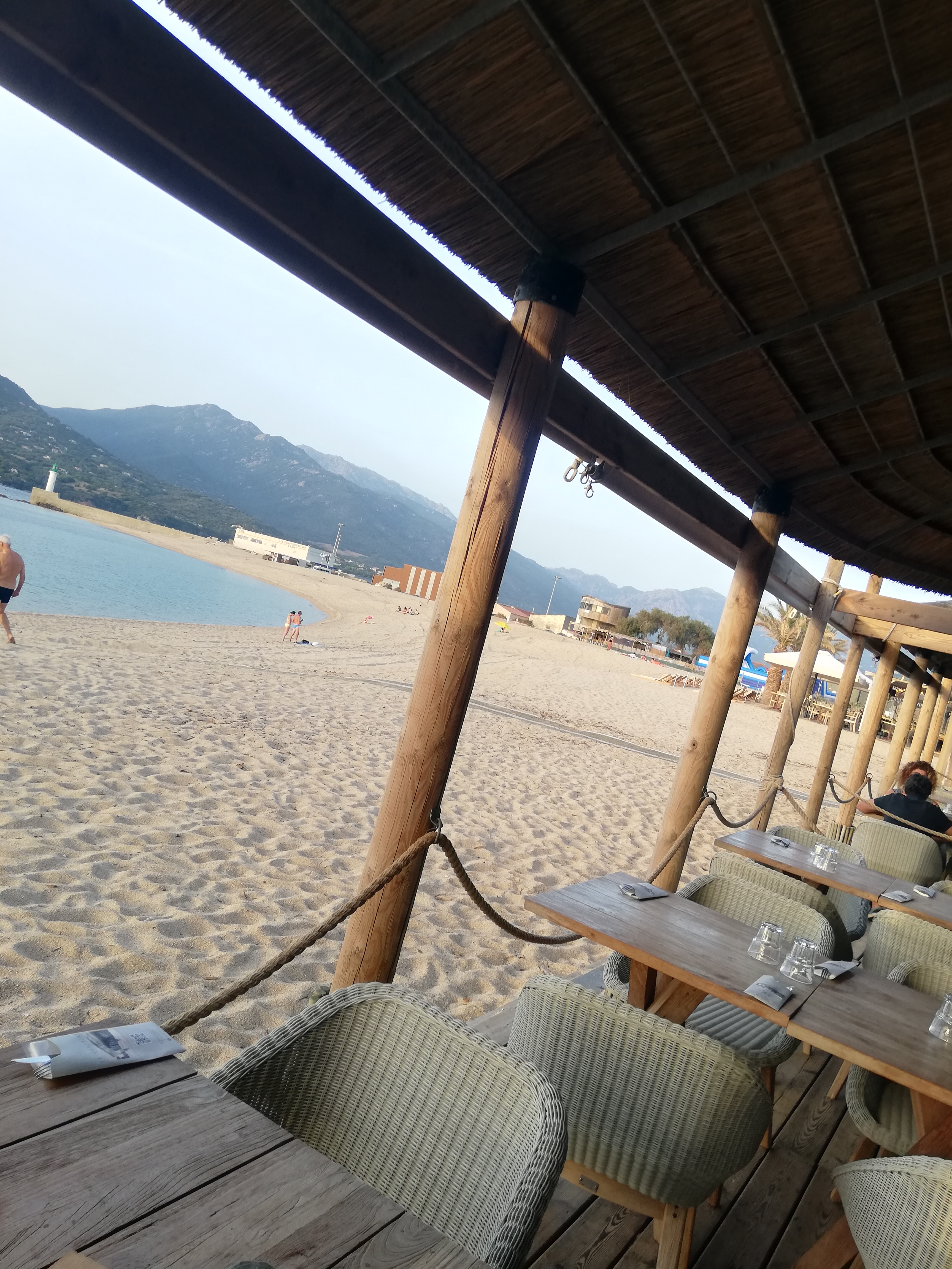 Le lieu idéal pour prendre un verre ou déjeuner les pieds dans l'eau Une vue magnifique sur la plage de Propriano et le golf de Valinco Le personnel est très sympathique, la carte propose beaucoup de plats à base de poissons et fruits de mer pour des prix plus que raisonnables en pleine saison C'est un grand oui