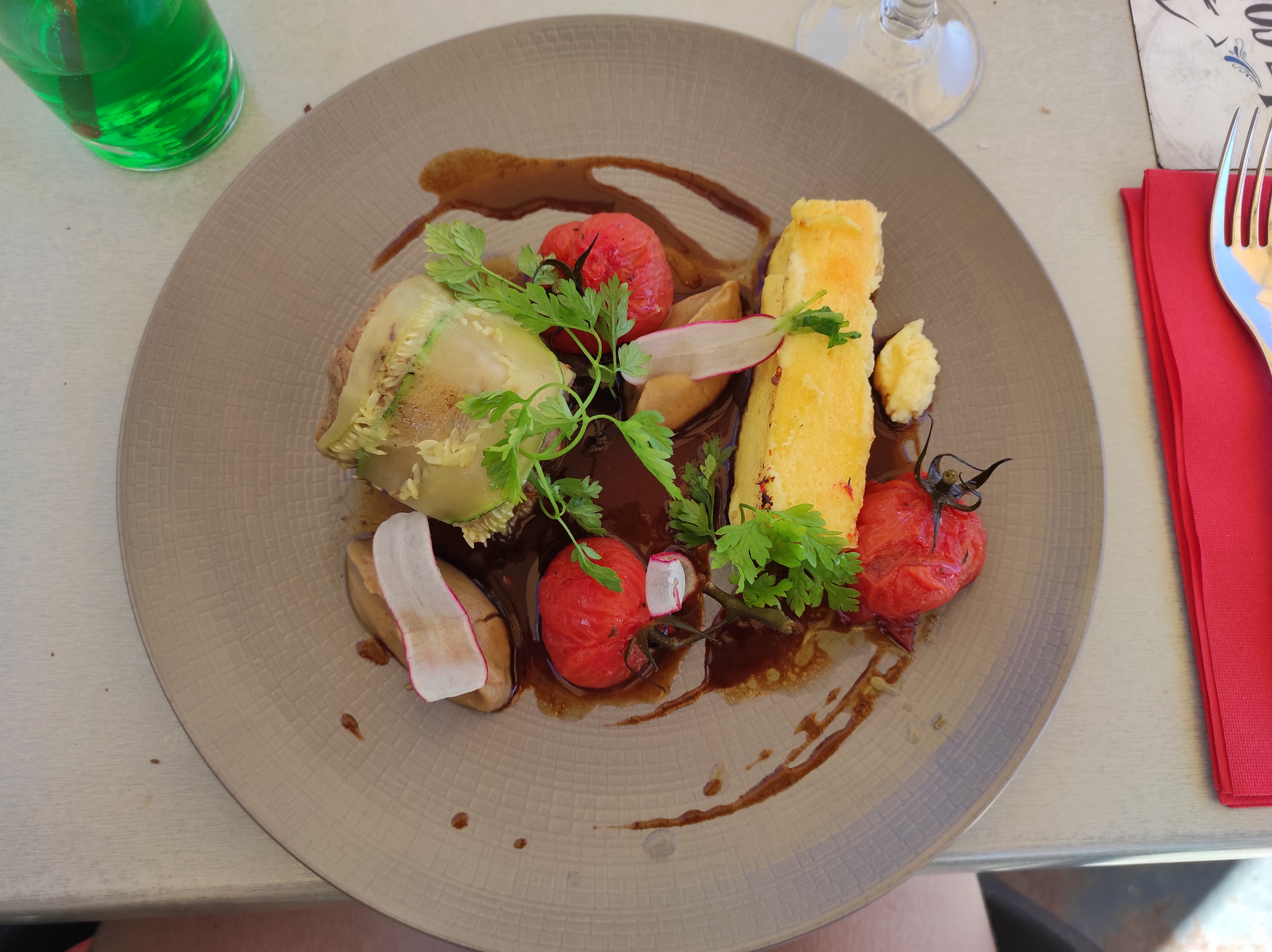Le menu gourmand était vraiment gourmand, le vin délicieux... Nous avons juste regretté d'avoir une table dans le passage. Je recommande