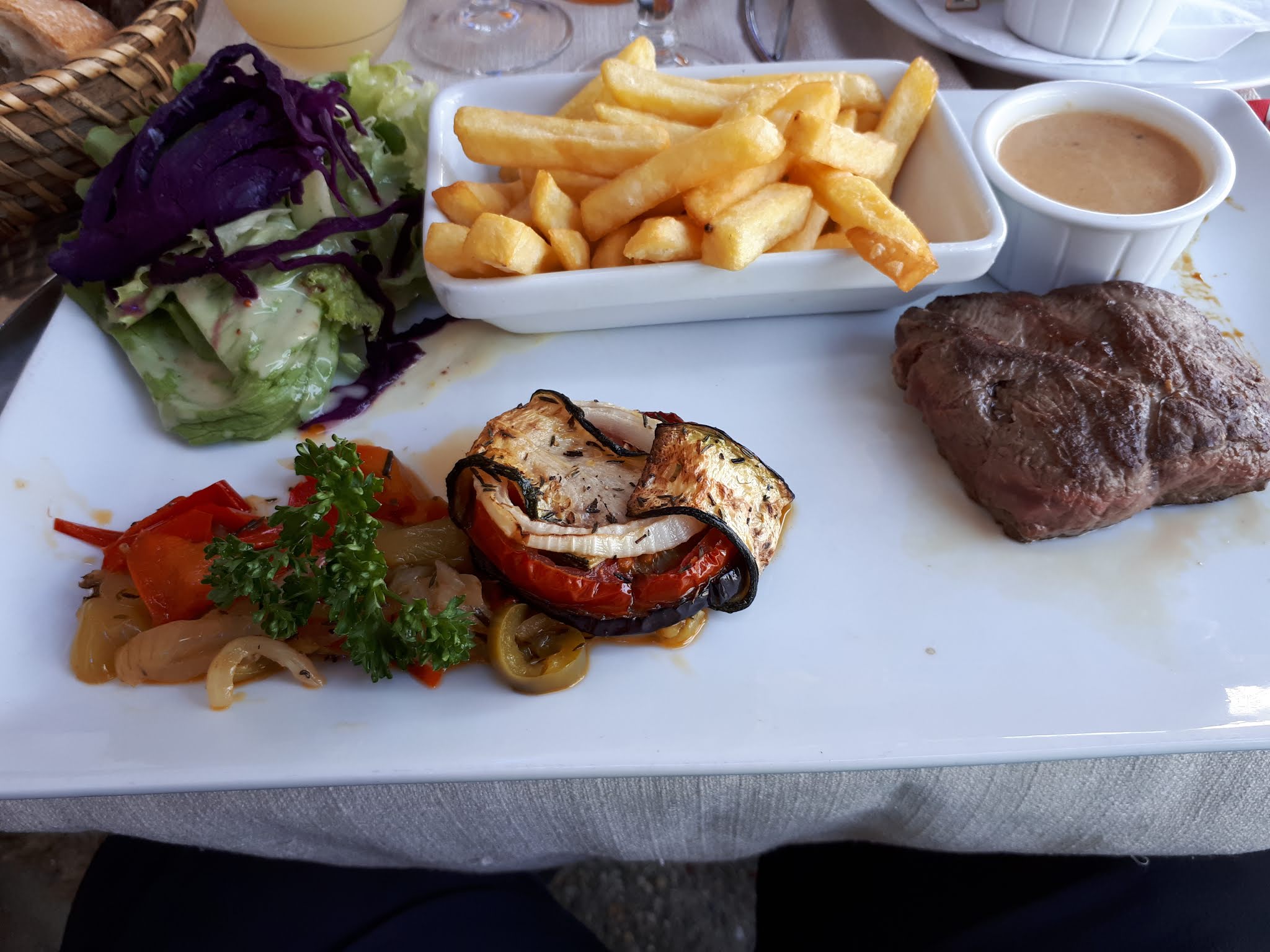 Très belle vue sur la plage. Bien mangé on a juste redemandé de réchauffer le plat les légumes étaient froid. En plus pas eu le temps de boire l'appérif le plat est arrivé.